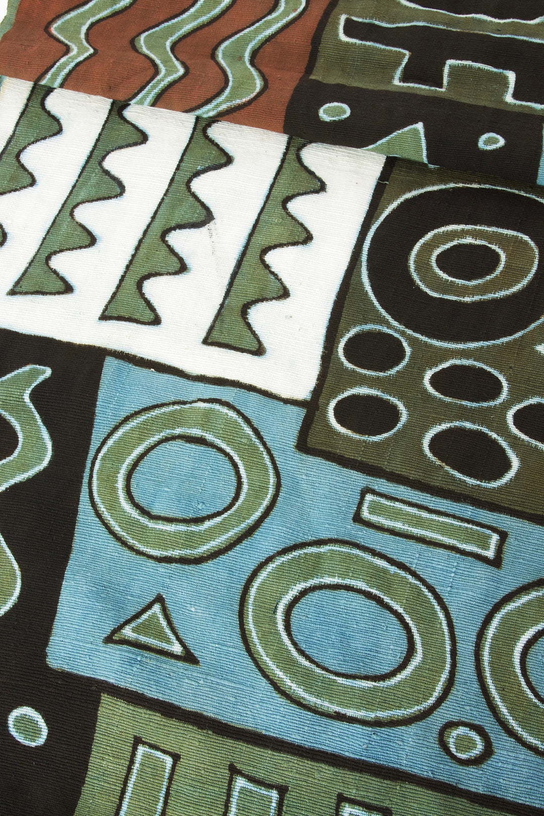 Malian textile artisans apply an updated mudcloth technique to create this bold woven cotton throw blanket. Deep blue, green and dark brown tones mingle in an array of geometric shapes based on traditional and contemporary African symbols.