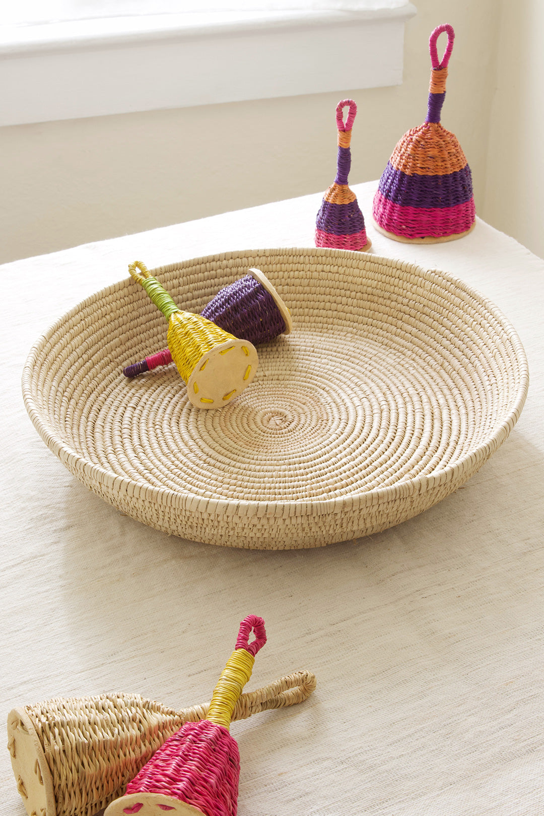Each of these rustic baskets is handcrafted from date palm leaves using traditional methods by a rural Tuareg woman in Niger.
