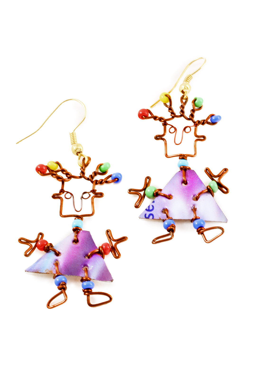 Here's another great set of earrings from our friends at Jarida Crafts. They take aluminum to create this colorful characters. Surgical steel posts. Colors and patterns will vary with each set.