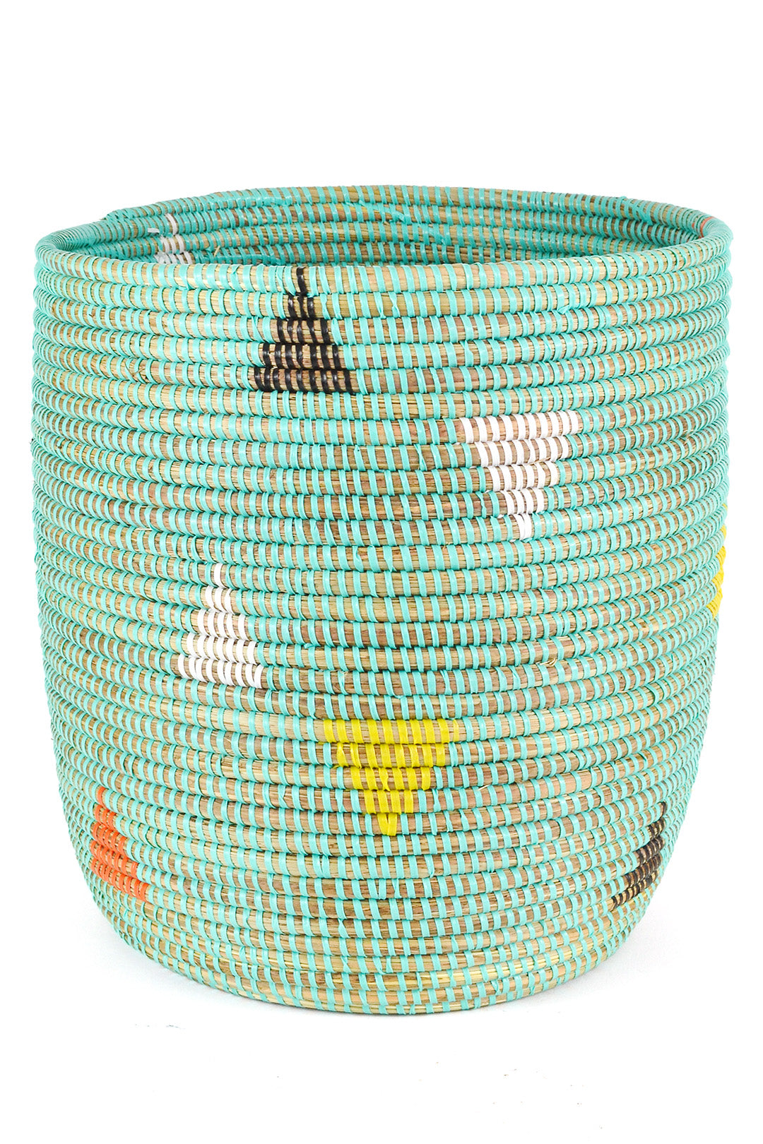 Wolof women in the West African nation of Senegal update traditional coil weaving methods by enlivening natural grass baskets with colorful strips of plastic salvaged from a mat factory. Cattails grow abundantly in rural Senegal, so women can earn a sustainable income from basket weaving while enriching homes around the world with modern African craftsmanship.