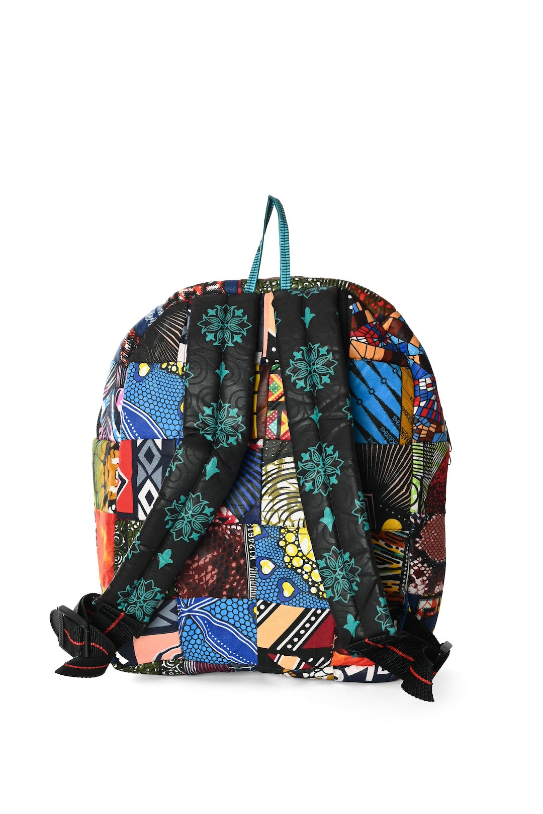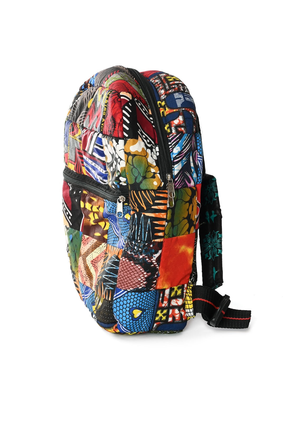Kenyan artisans from Jorova Crafts create these vibrant, patchwork backpacks from colorful squares of printed cotton wax cloth. Each includes a full zip closure, a zippered outer pocket, solid fabric lining, and adjustable straps. Assorted fabrics are used, making each one unique.