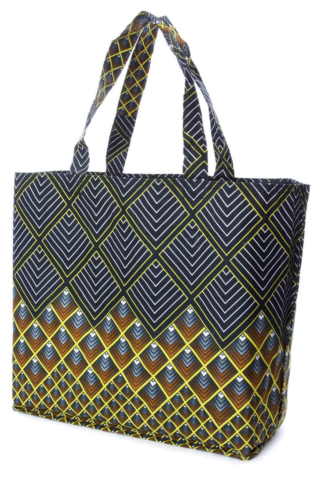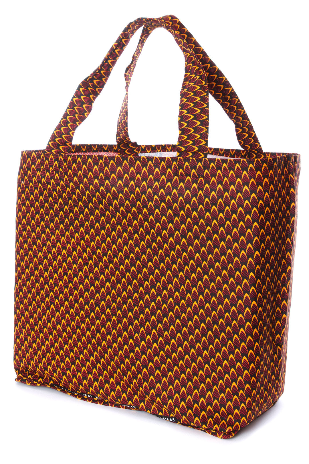 Senegalese artisans craft these spacious cotton totes from assorted cuts of colorful printed cotton wax cloth lined with plastic rice sacking. Each bag is completely unique, and features two carrying handles and an interior zippered pocket.