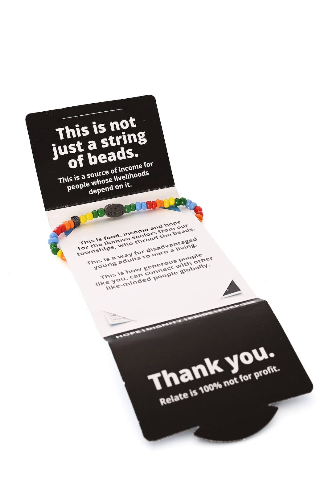 Relate bracelets are handmade and sold to make a difference and change lives. As a 100% not-for-profit social enterprise, the majority of Relate's revenue is donated to credible causes and invested in social initiatives, with a focus on creating opportunities for all involved, at every stage of a project.