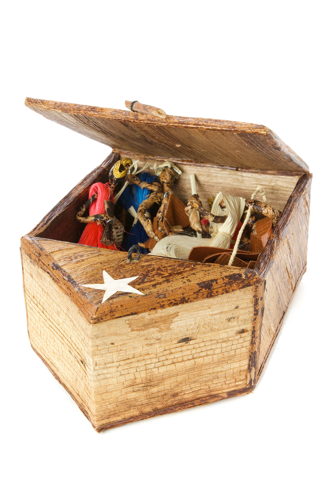 Banana Fiber Single Door Stable Nativity with Colorful Sisal