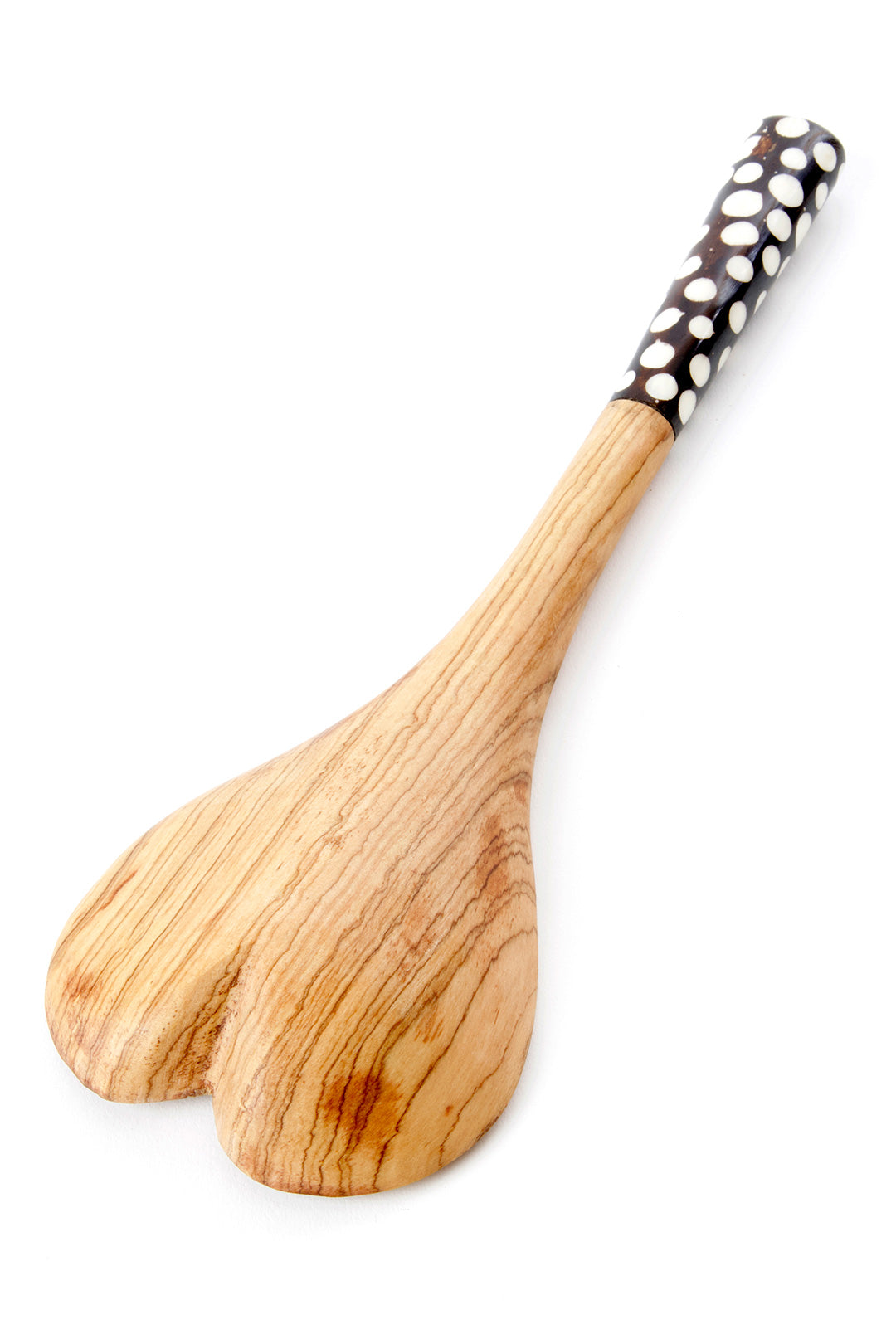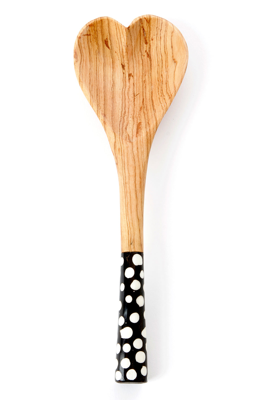 Batik Dot Handle Wild Olive Wood Heart Cooking Spoon