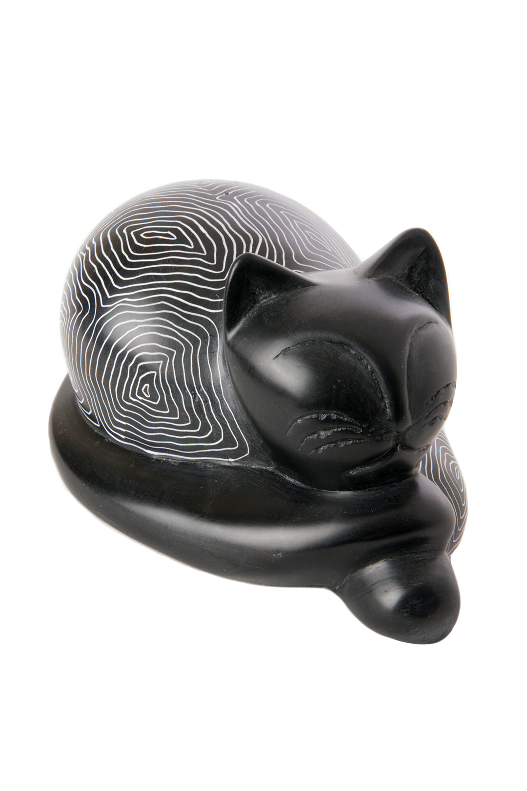 Artisans in Kenya's highlands carve soft soapstone to create this serene sleeping cat sculpture. A subtle addition to any room of the home, this sweet handmade decor accessory makes a wonderful gift, particularly for cat owners.