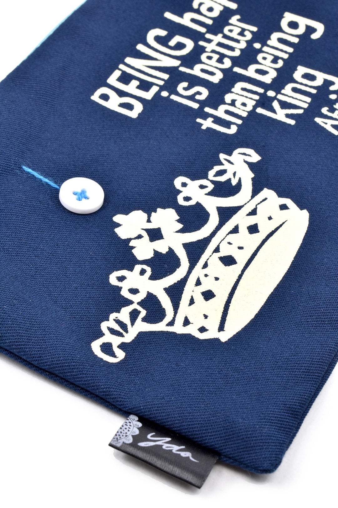 At Yda Walt Studios in Johannesburg, South Africa, talented owner/designer Yda Walt and a small team of artisans dream up inspirational products centered on South African life and ethos. Beautifully screen printed, lined and finished with a contrasting zipper, this flat pouch showcases the African proverb, "Being happy is better than being king."