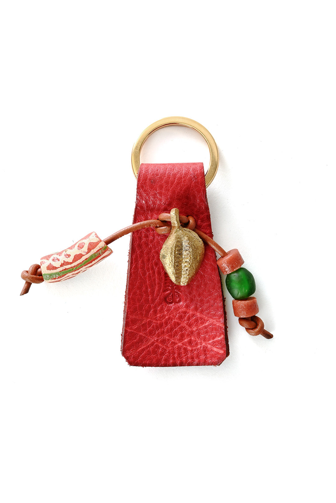 Carry keys with Ghanaian style, using this keyring adorned with a brass cowry shell charm and recycled glass beads. Fashioned from thick, quality leather, this key ring is handmade by artisans in Ghana.