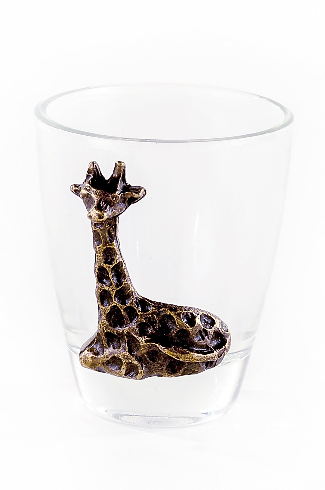 The giraffe on the front is cast from zinc and electroplated with an antique brass finish. Meticulously checked by many hands, each shot glass makes a wonderful fair trade gift.