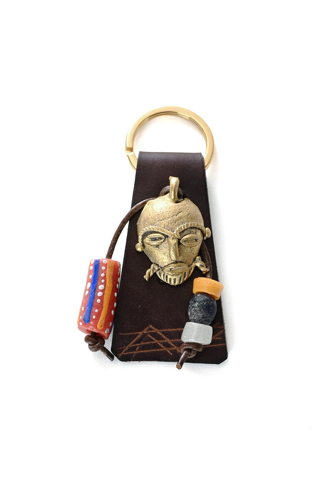 Carry keys with Ghanaian style, using this keyring adorned with a brass West African mask and recycled glass beads. Fashioned from thick, quality leather, this key ring is handmade by artisans in Ghana.