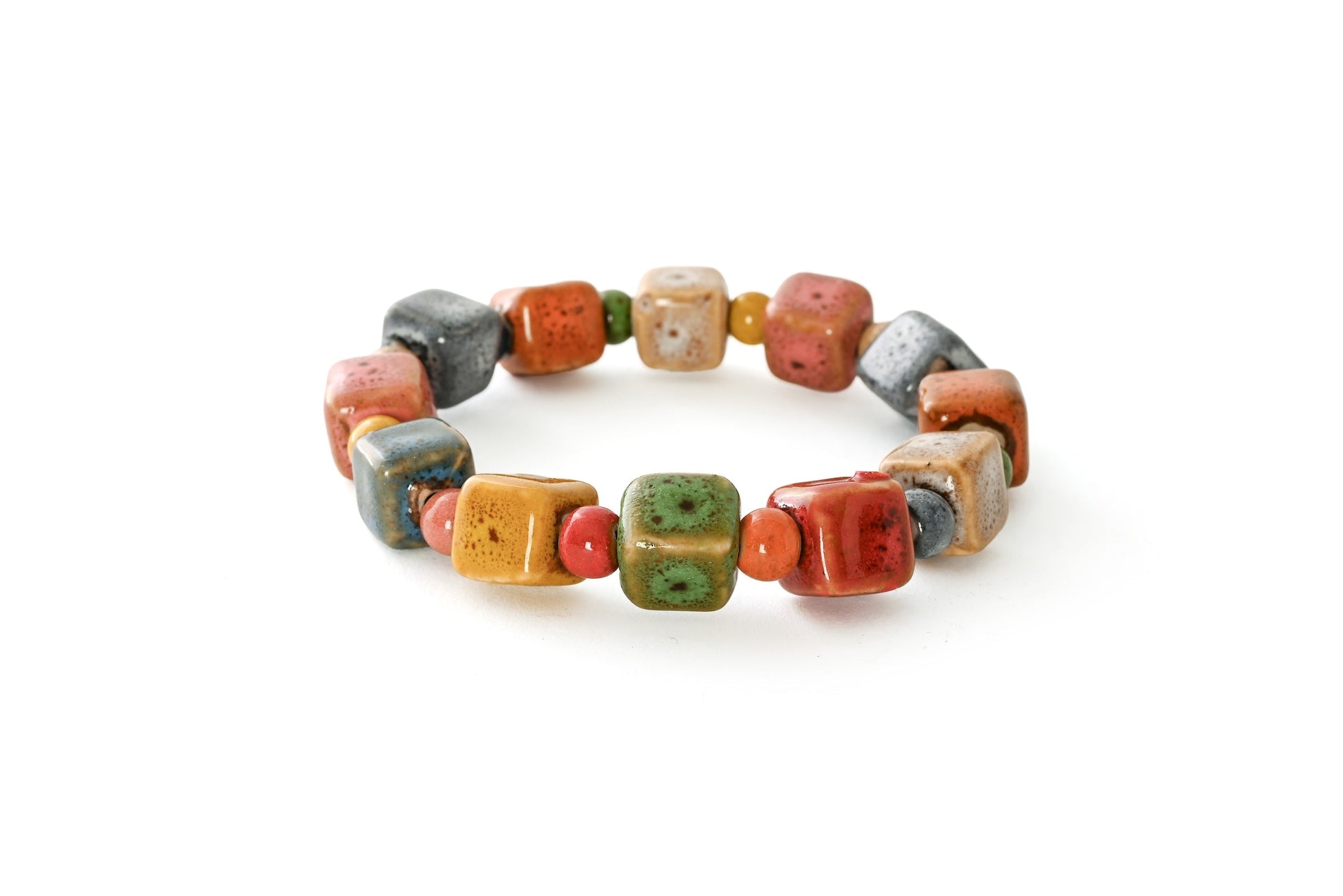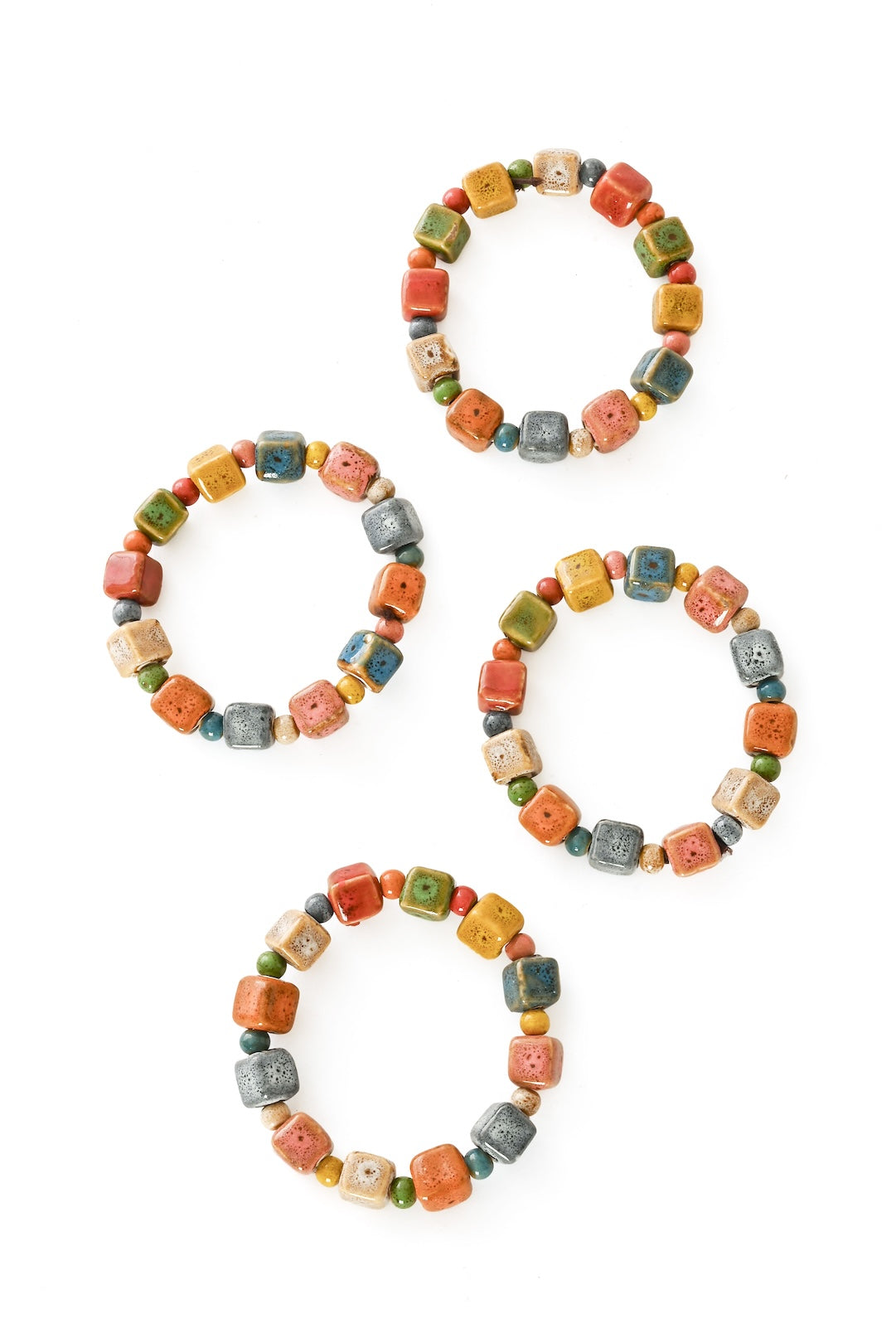 Zawadi translates to ‘gift’ in Swahili, which we love because the square beads do resemble little gift boxes. Handcrafted by talented artisans in Kenya, the bracelet features a charming array of glossy ceramic square beads, each with its own earthy variation in hue. Strung on sturdy elastic cord for a comfortable, stretchy fit, it’s a joyful piece that adds a pop of color and artisan charm to any everyday look.