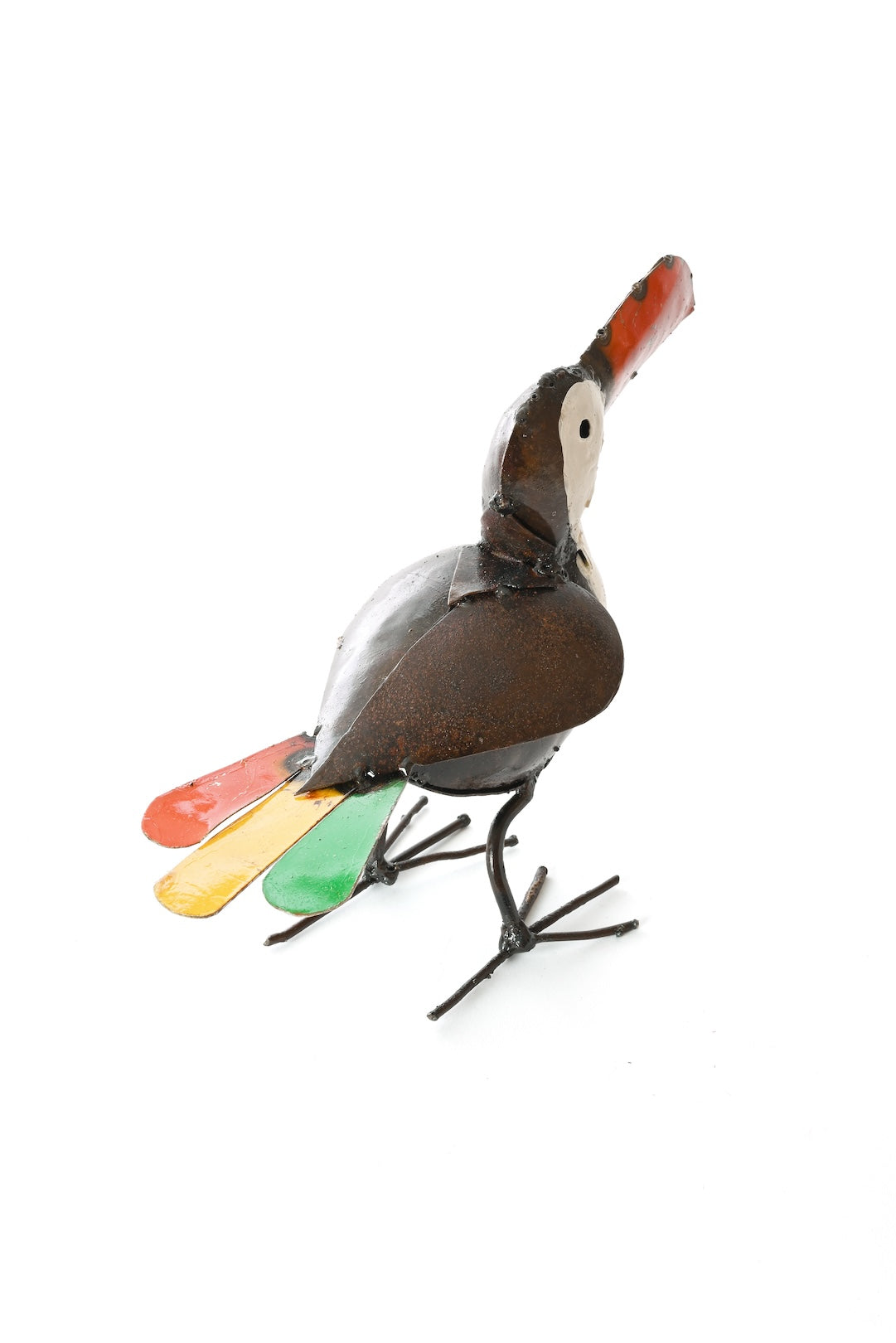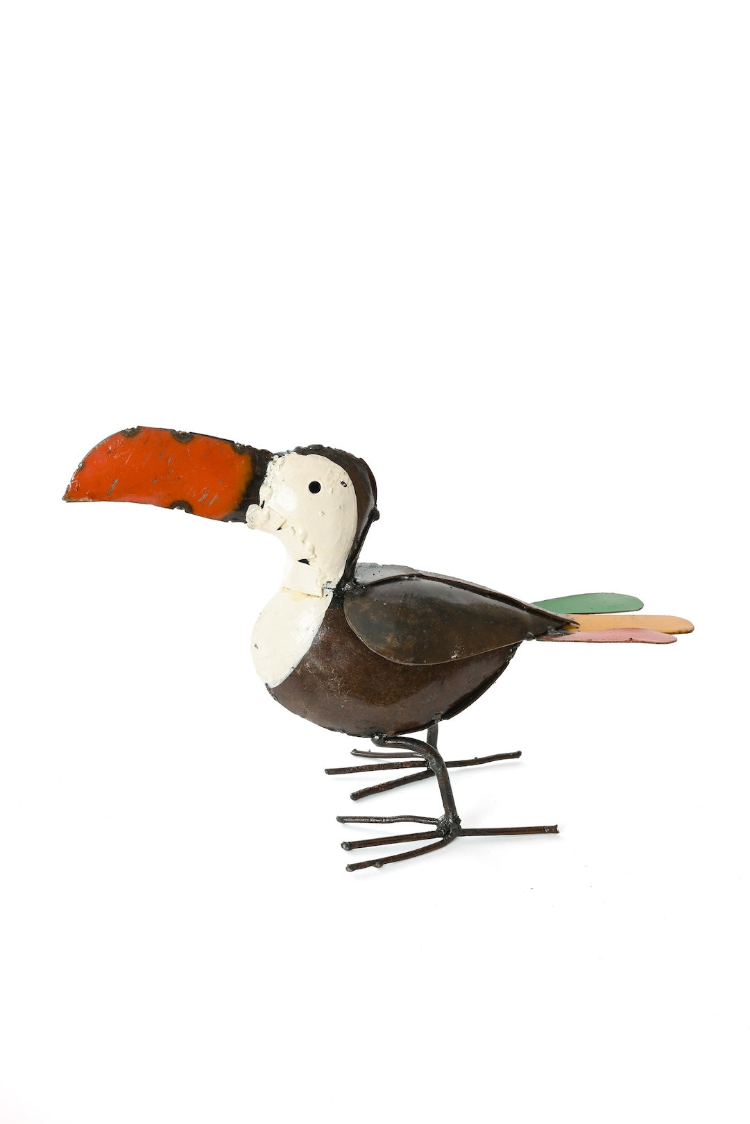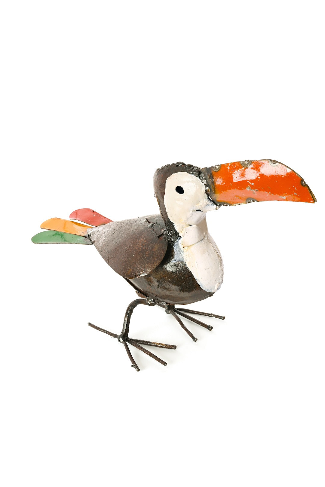 Zimbabwean sculptors weld recycled metal finished with hand-painted details to create this colorful and unique toucan sculpture.