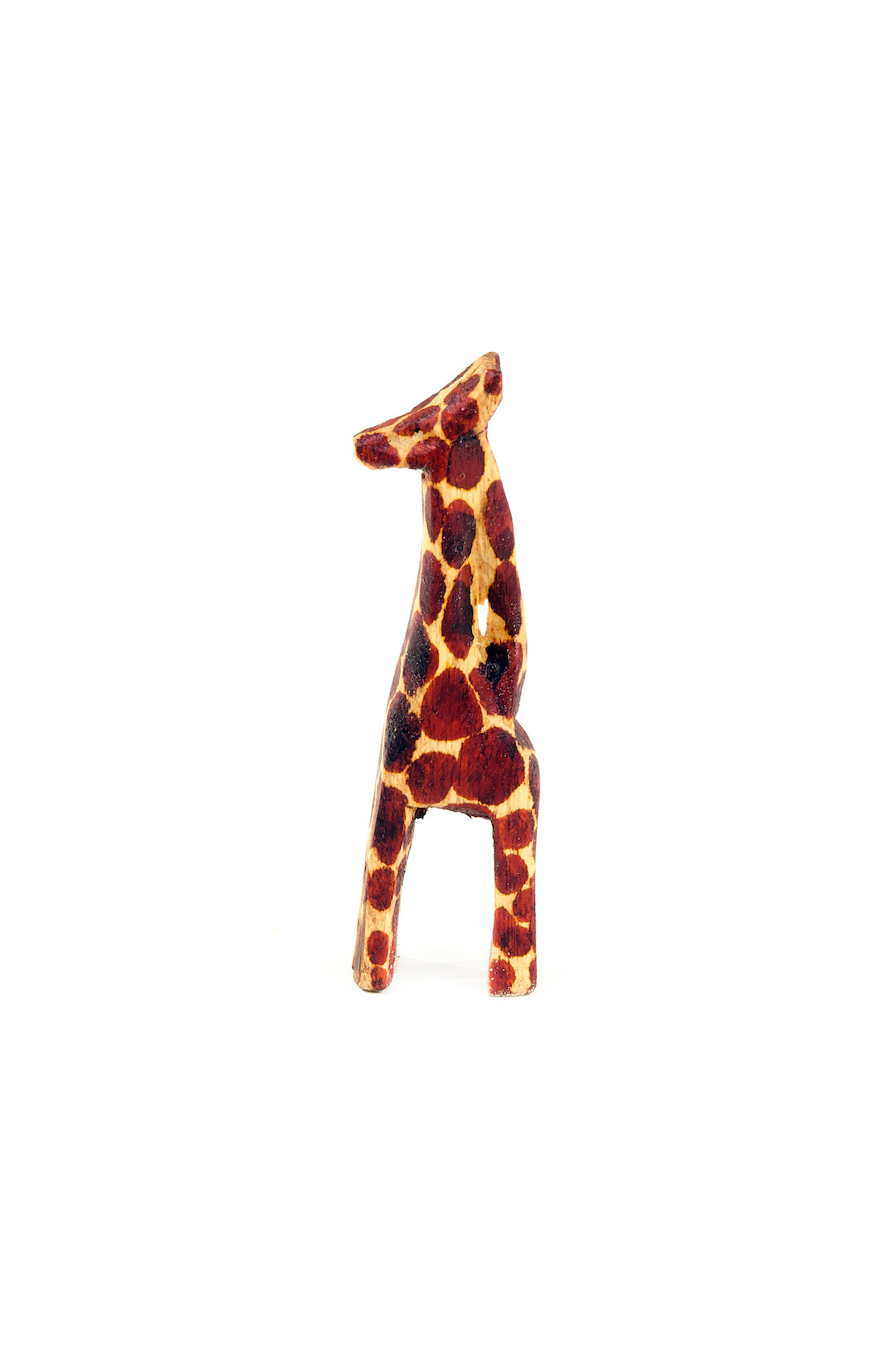 Kenyan artisans hand carve sweet safari animal miniatures from pale jacaranda wood. An inexpensive gift that appeals to many, our handcrafted wooden giraffes keepsakes are sold by the dozen.