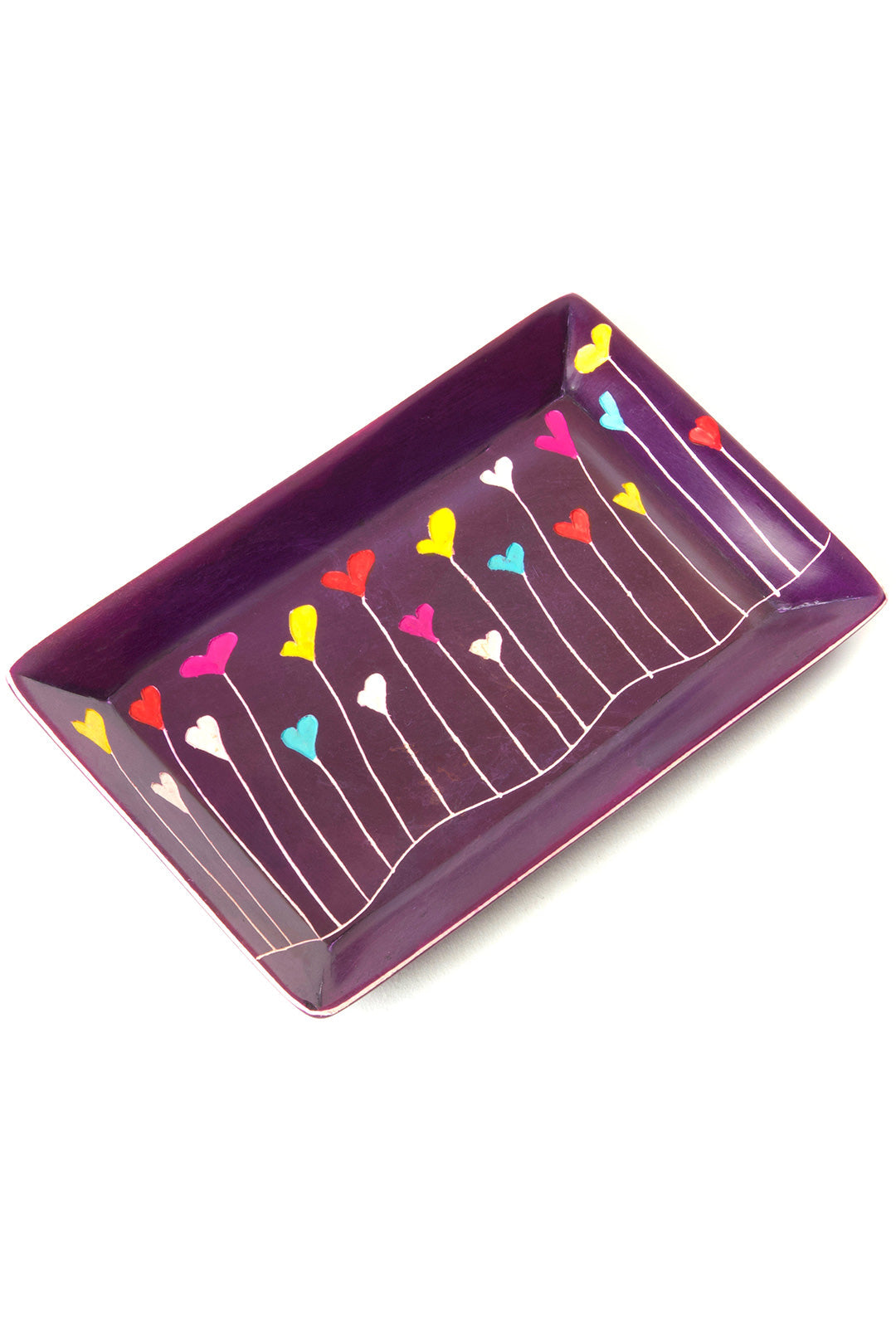 Kenyan artisans handcraft an uplifting decorative dish by carving soft soapstone and adding a fanciful hand painted heart flower design. Matching pieces are also available to bring a joyful touch of global art to the home.