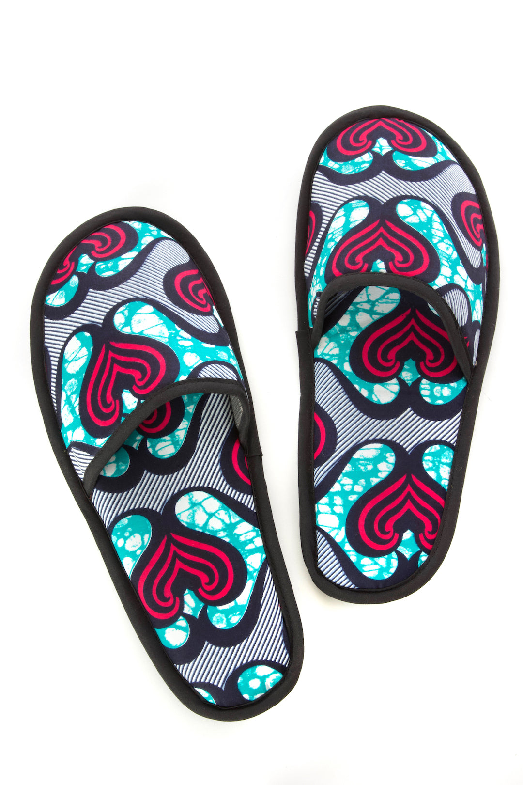 Ghanaian artisans put fun ankara wax cloth to work as comfy slippers. With a foam footbed, anti-slip bottom and contrasting trim, these sweet slippers showcase the brilliant colors and patterns of African wax cloth.
