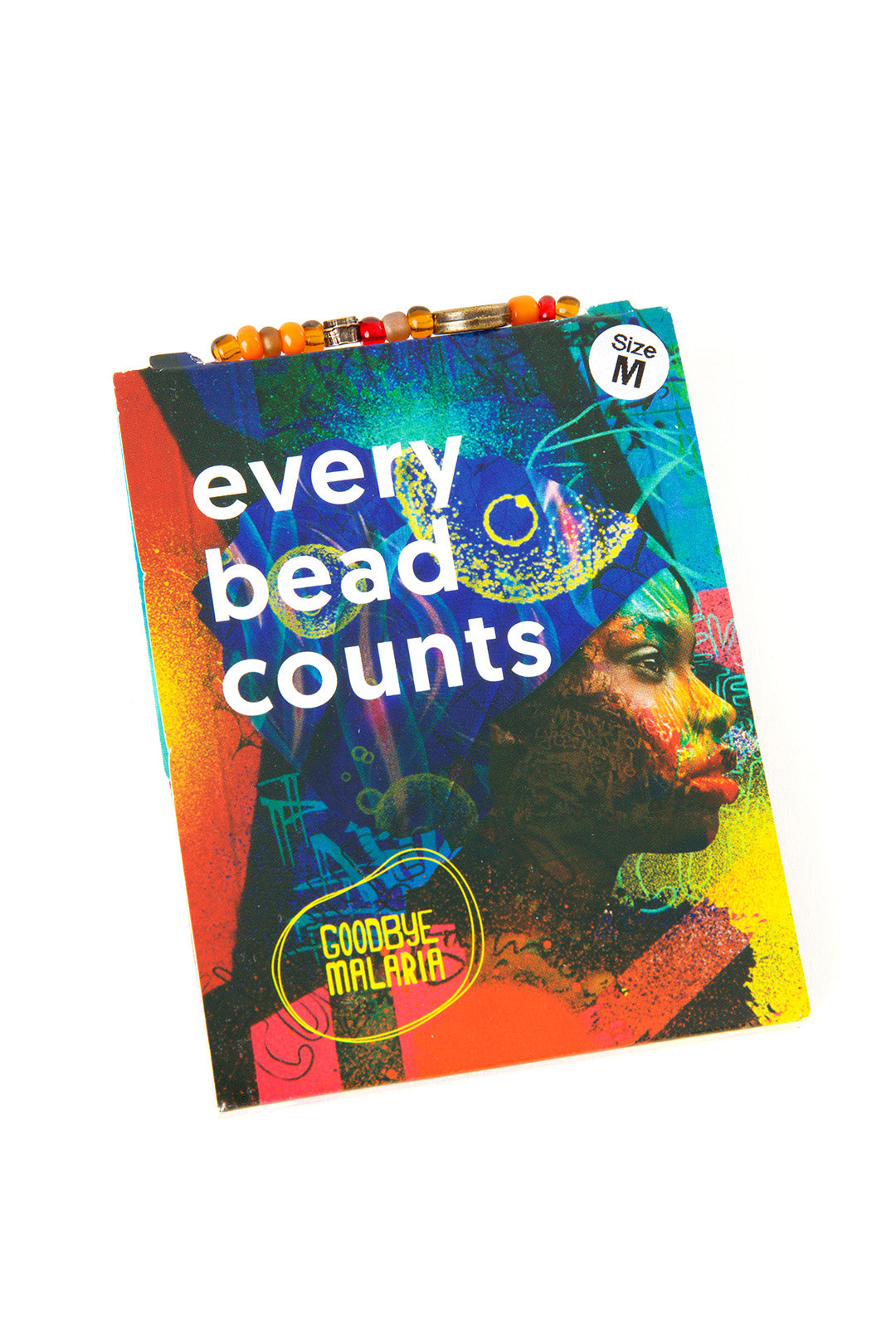 Goodbye Malaria aims to eradicate malaria in Mozambique, while investing in Africa's future, creating employment and protecting, changing and saving lives. This bracelet was inspired by Africa - it represents the continent's heart and soul and the hope for better, happier lives and opportunities for the people of Africa. The yellow beads represent sunshine, life, and happiness to communities and families who have been in the dark - families that have been smitten by the disease. The red beads symbolize 'the heart', which represents 'life'. Inspiration behind the red beads comes from the stamens of the Citronella flower - without the stamens there is no life.