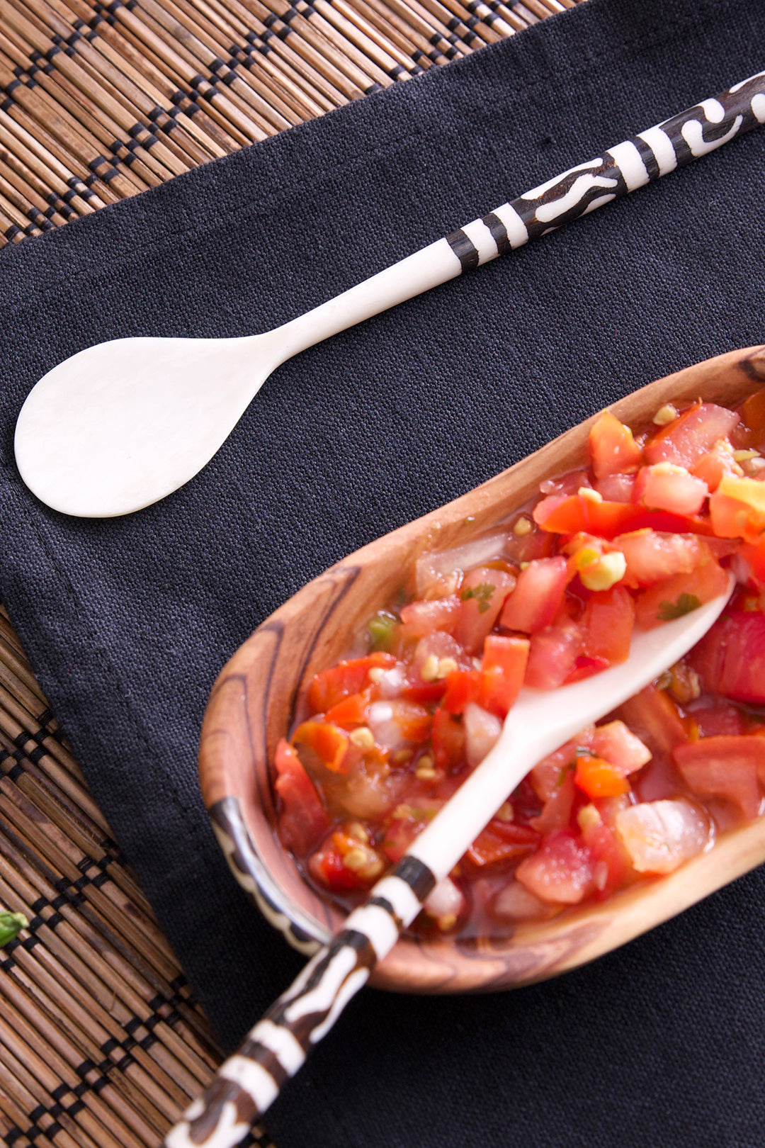 Kenyan artisans hand carve beautiful tea spoons from bleached cow bone, hand dyed using a wax batik method. Each spoon serves beautifully and adds a cultural aspect to the tabletop.