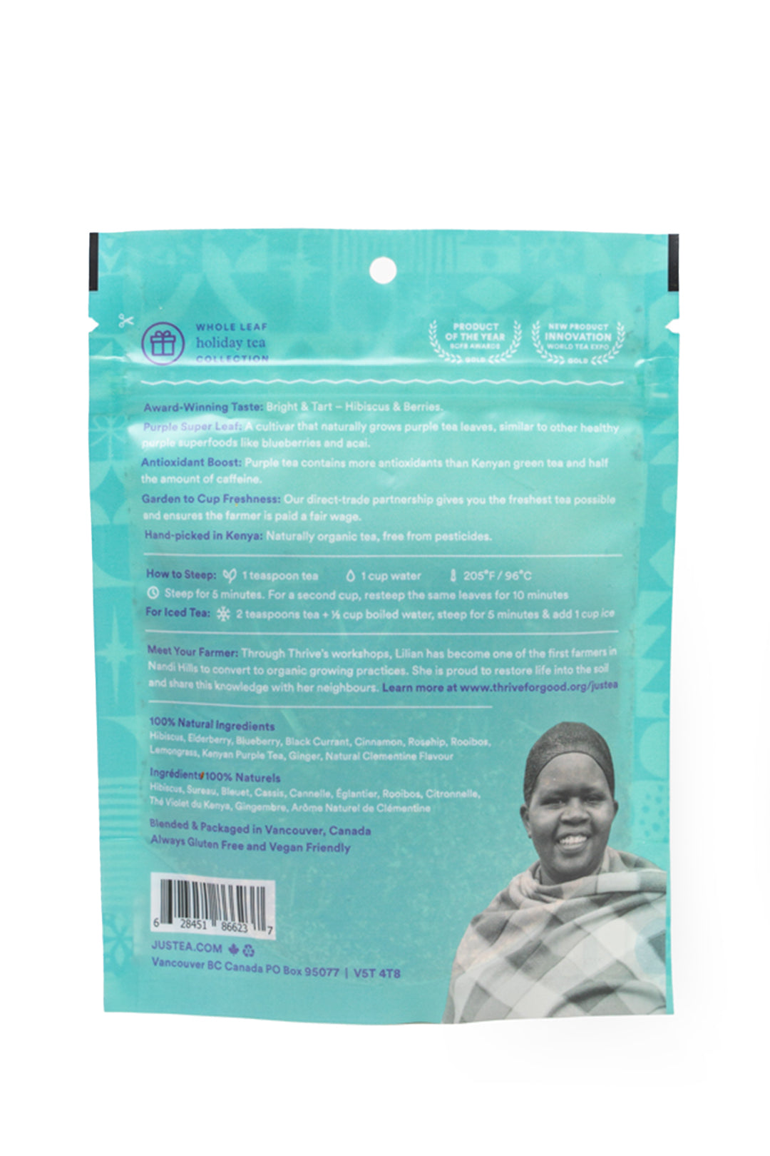 Inspired by memories of sipping mulled wine while strolling through snowy Christmas Markets, this vibrant purple tea is perfectly balanced with hibiscus, berries, and a touch of spice.