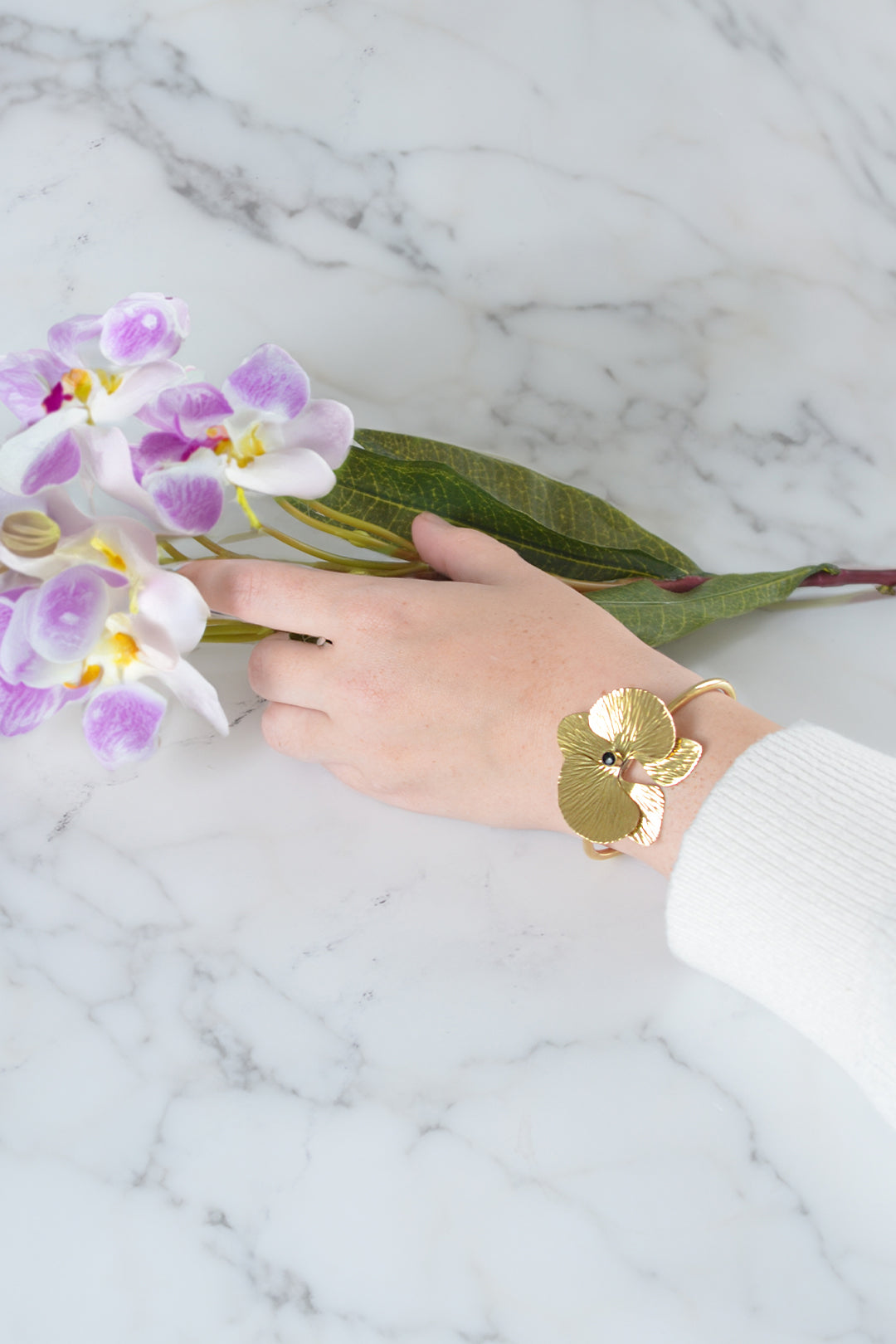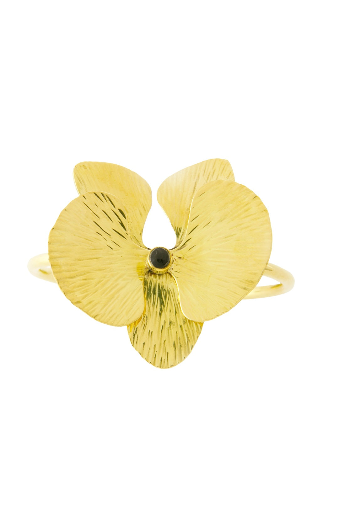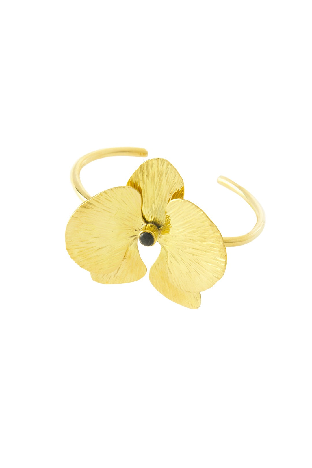 Talented Kenyan artisans handcraft this opulent orchid cuff bracelet by shaping textured brass petals around a delicate inset of cow horn. The gleaming brass draws loads of attention and compliments.