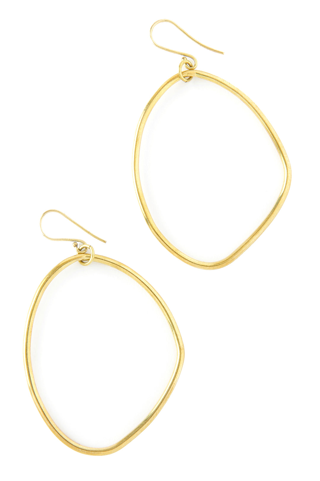 Kenyan jewelry artists break the mold and bend glowing brass into an asymmetrical oval that can be worn in multiple ways.
