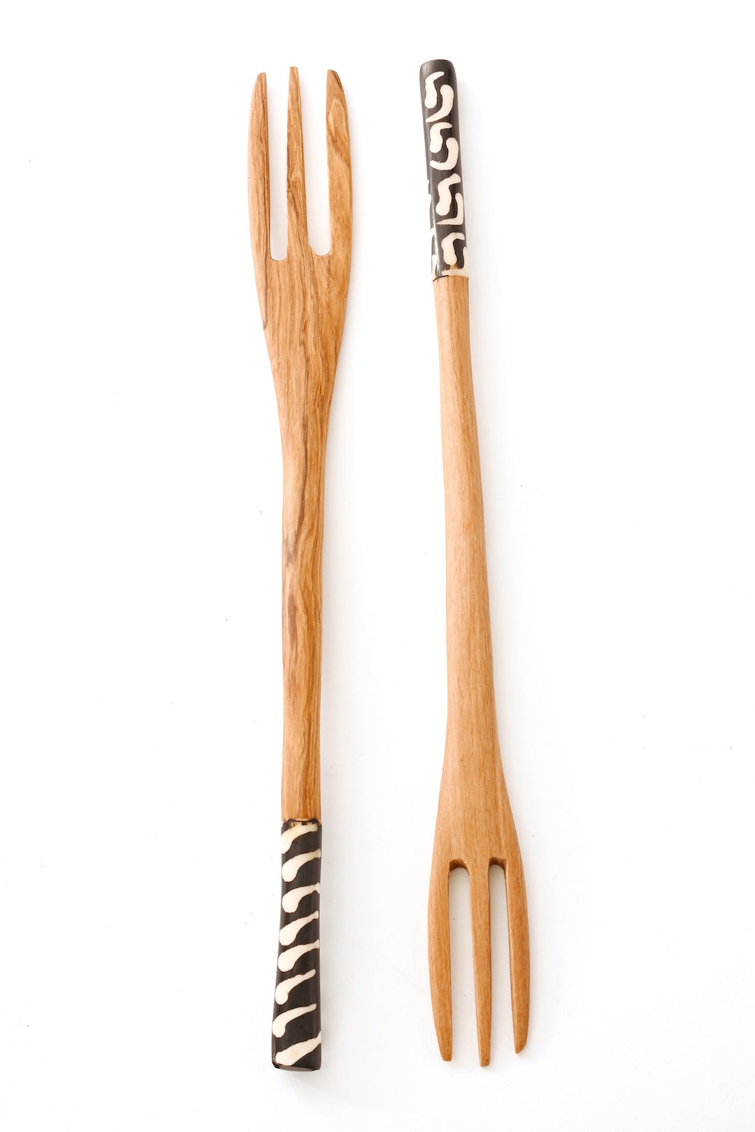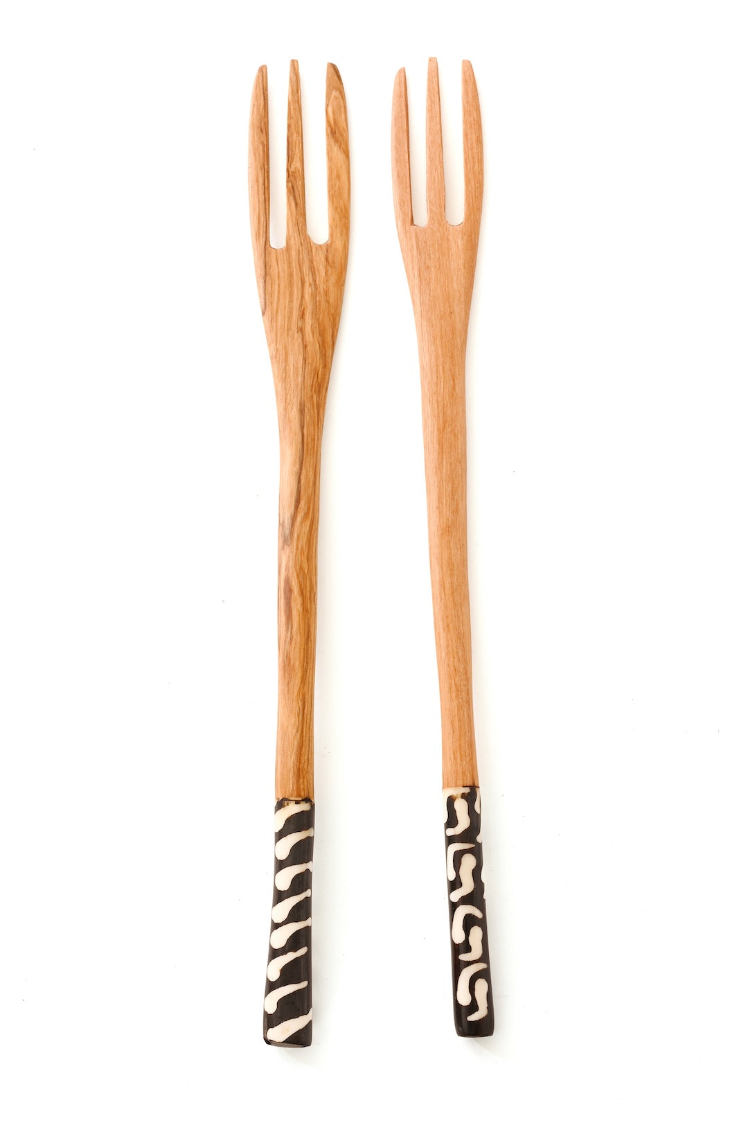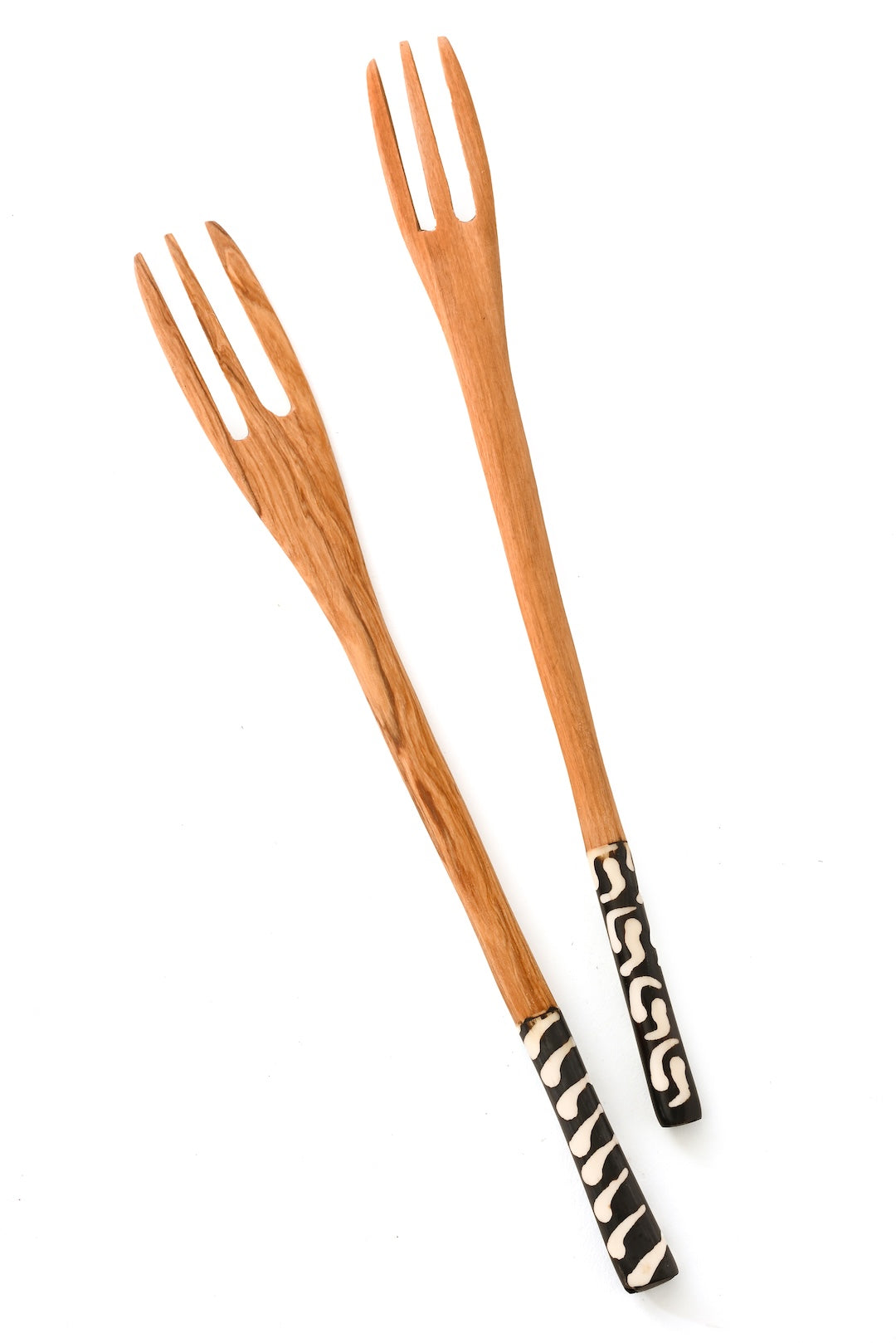 Kenyan Olive Wood Salad Forks with Etched Bone Handles