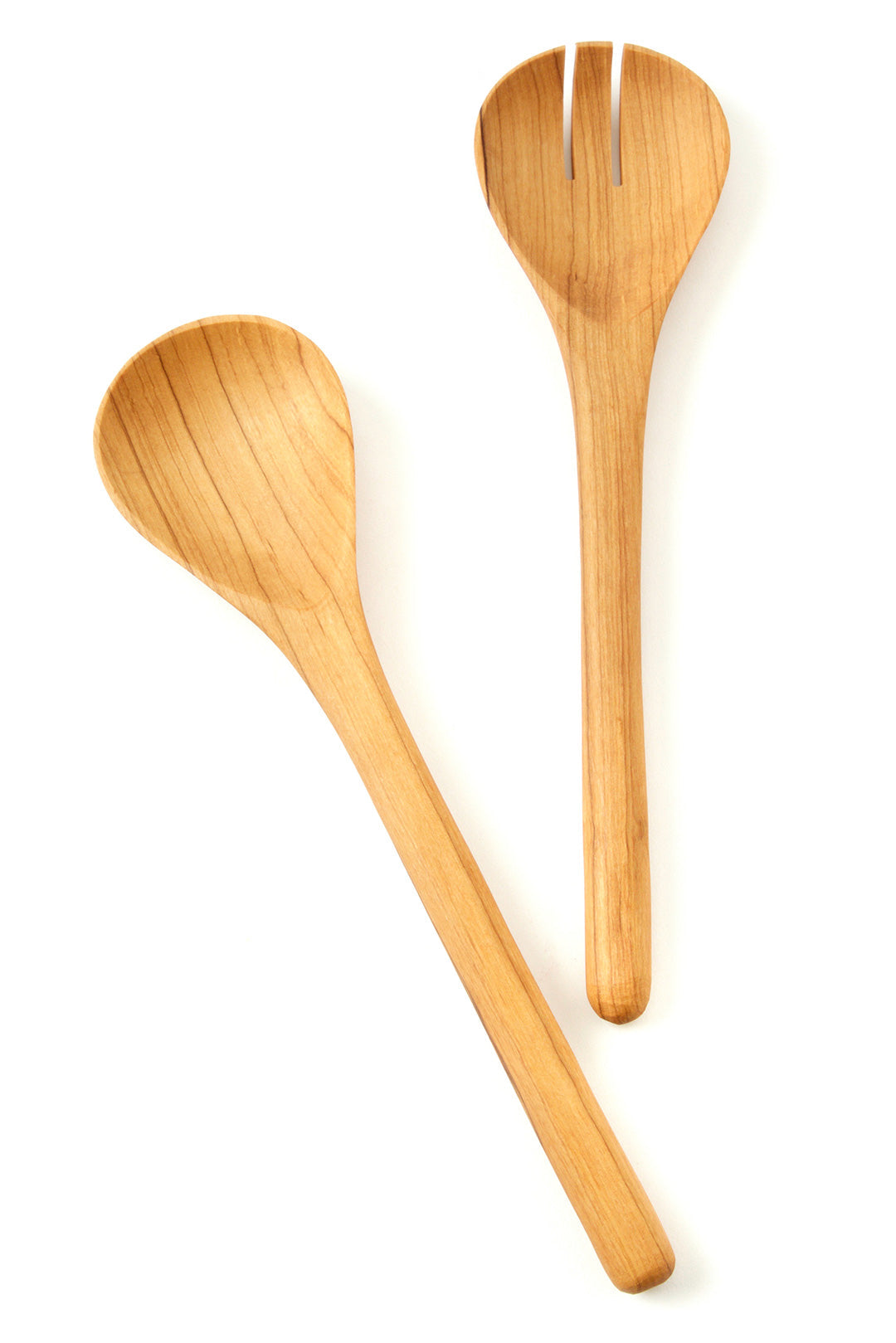 Wild olive wood is a preferred carving medium of Kenya's Kamba wood carvers. With extreme precision, these talented men draw beautiful serving pieces from the rich grain of this East African hardwood. Wild olive wood salad servers add natural beauty to the tabletop and season well through the years.