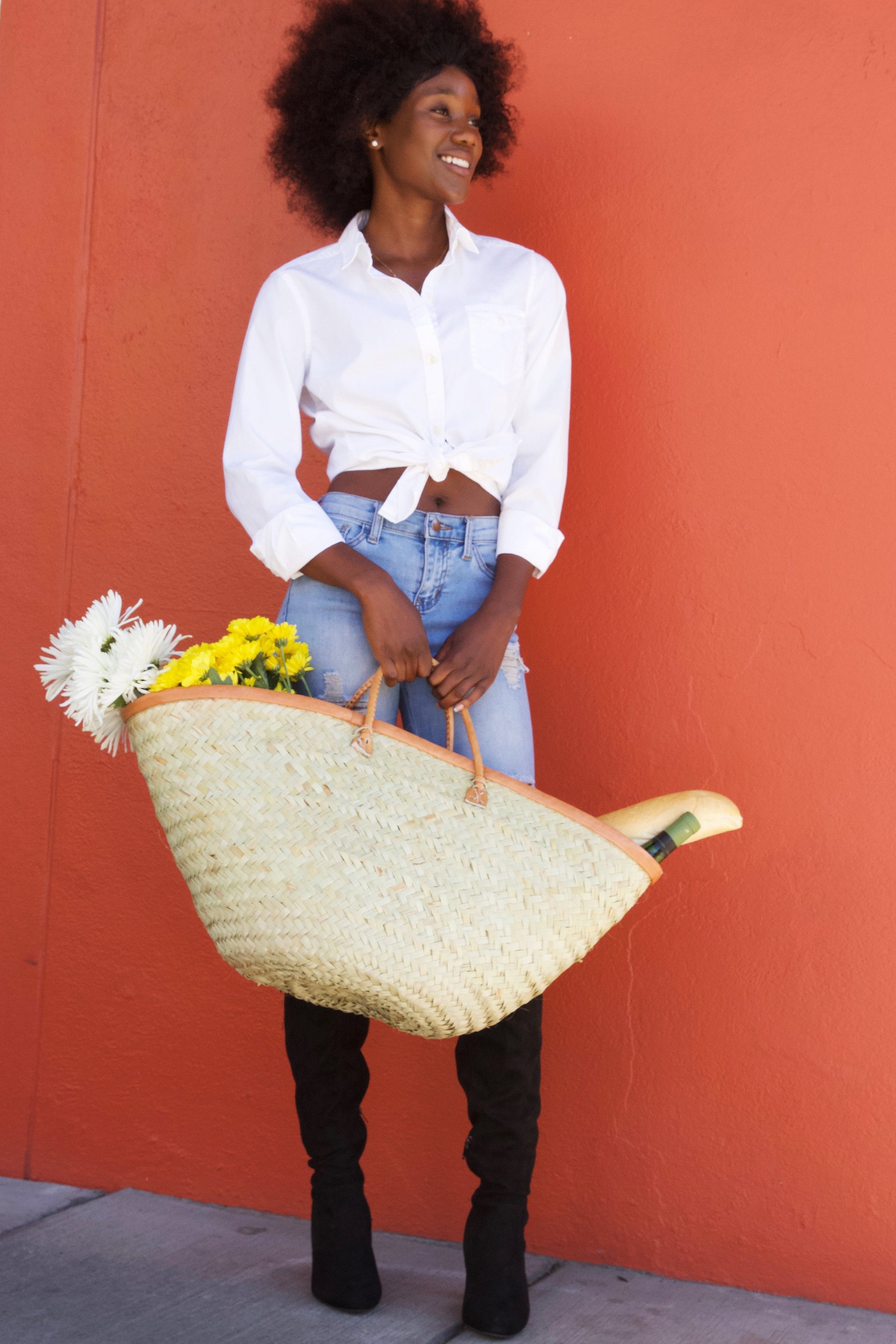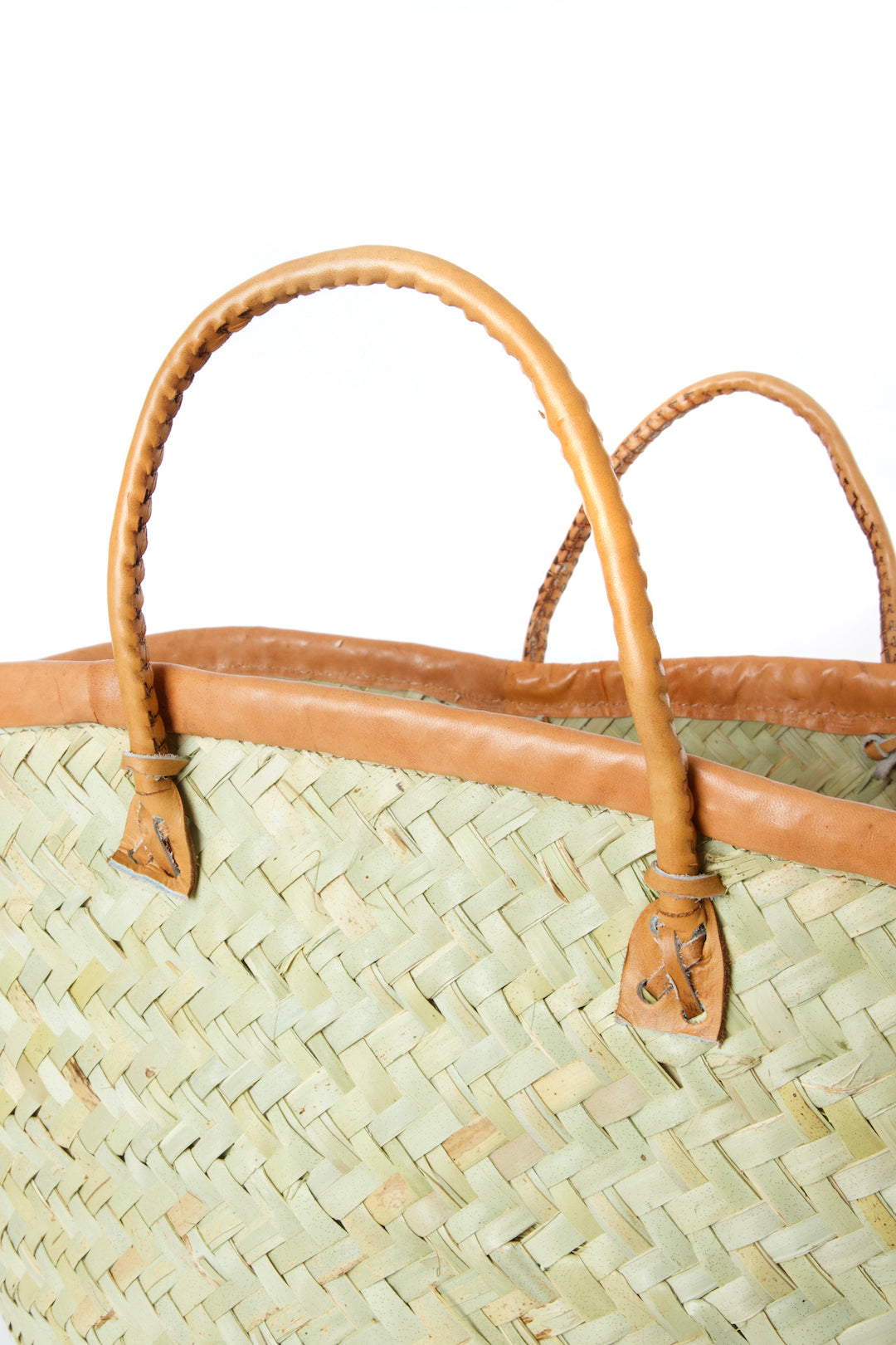 Kenyan Traditional Wide Weave Palm Shopper with Leather Trim