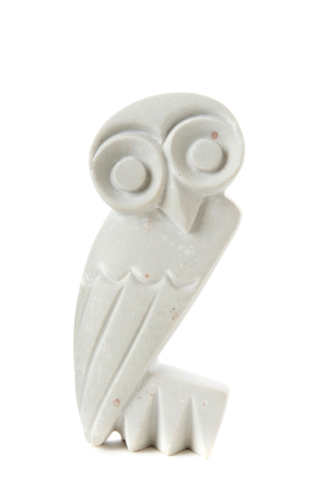 Zimbabwean sculptors carve beautiful white serpentine stone to create these unique abstract owl sculptures.