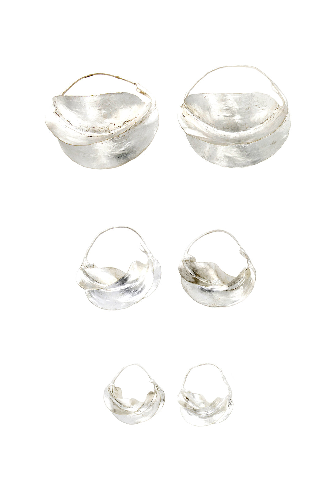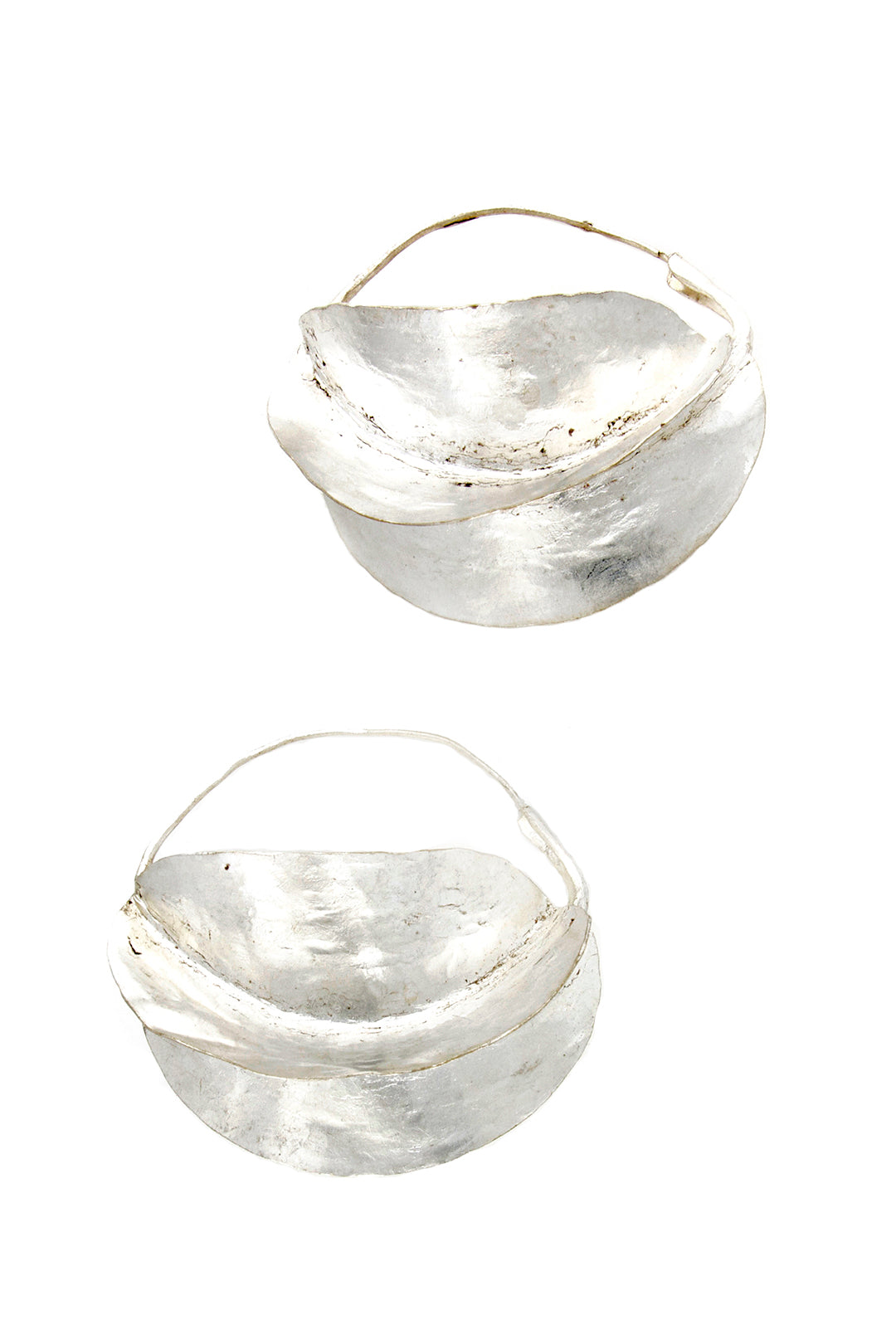 The Fulani people of Mali traditionally wore their riches in adornments they could carry at all times. Beautiful gold earrings of this style ranged in sizes, the most elaborate demonstrating great wealth and requiring yarn to be wrapped around the hooks to alleviate the weight of the gold.