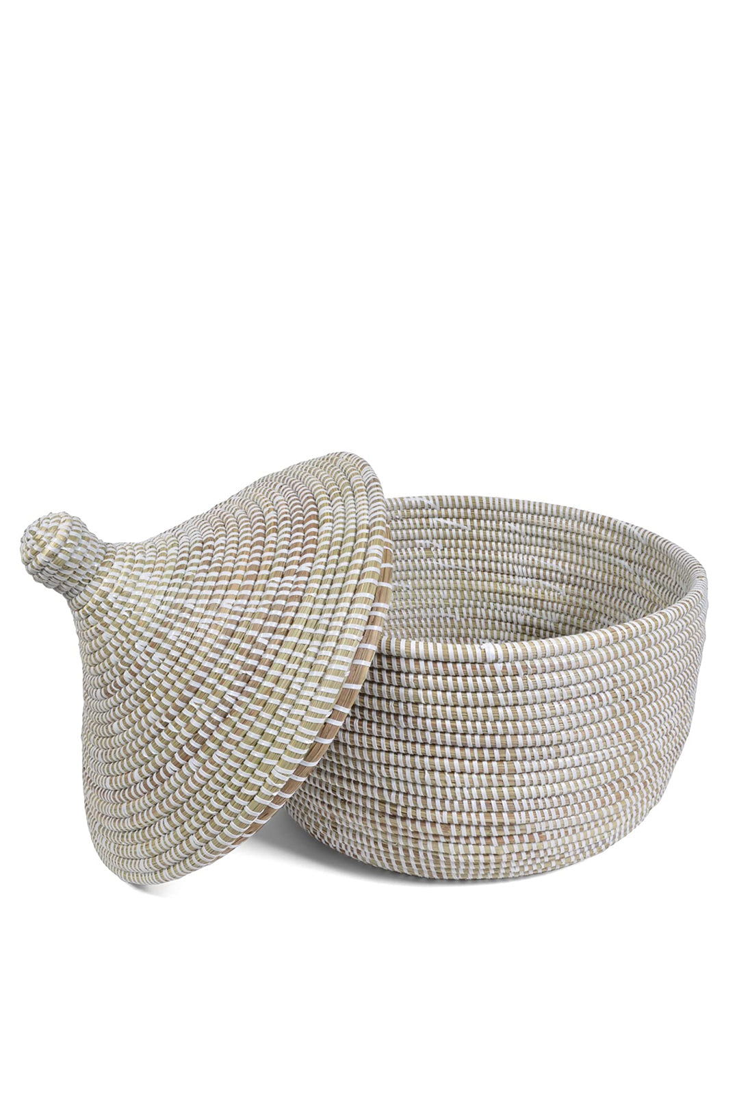 A network of rural Wolof women in nine Senegalese villages are working together to create beautiful handcrafted baskets for export. Using locally harvested cattail stalks and strips of plastic used to make prayer mats, the women bring supplemental income to their households by weaving baskets between their daily duties.