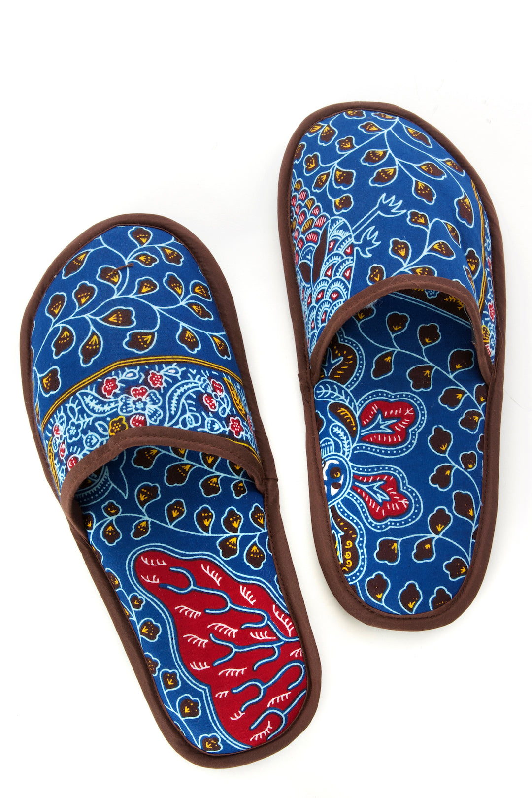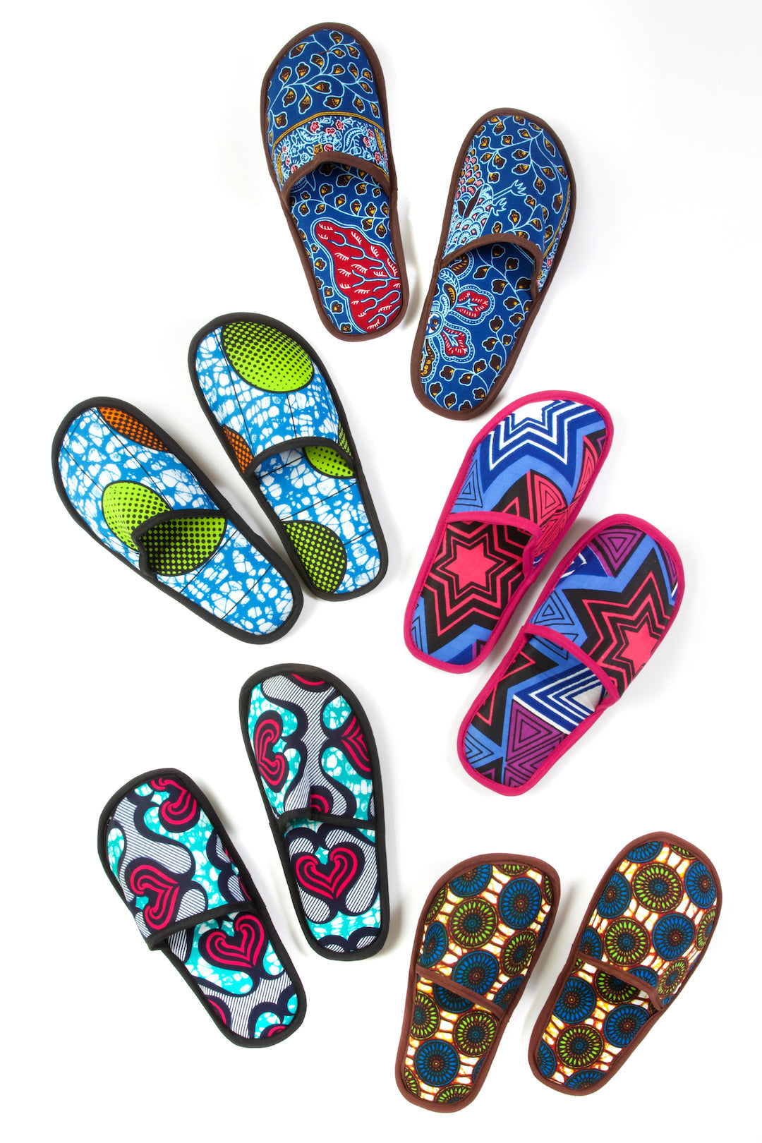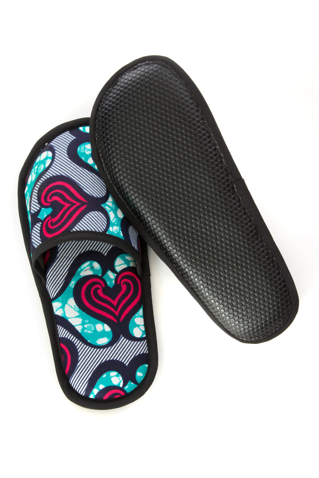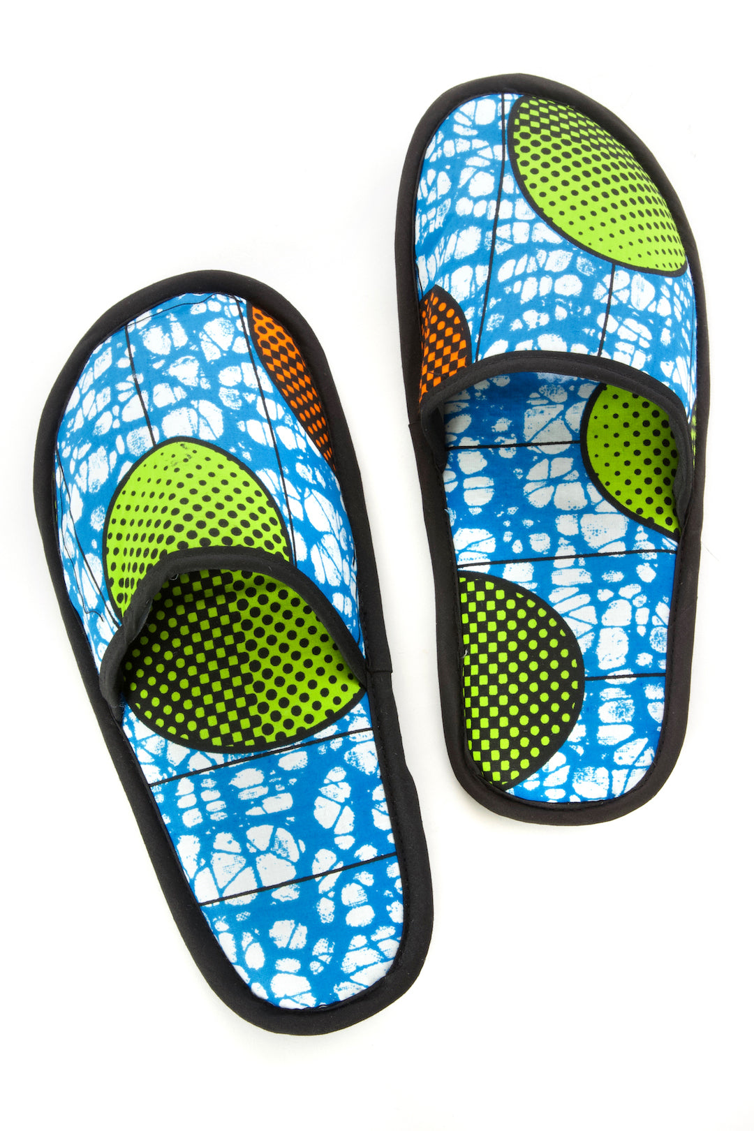 Ghanaian artisans put fun ankara wax cloth to work as comfy slippers. With a foam footbed, anti-slip bottom and contrasting trim, these sweet slippers showcase the brilliant colors and patterns of African wax cloth.
