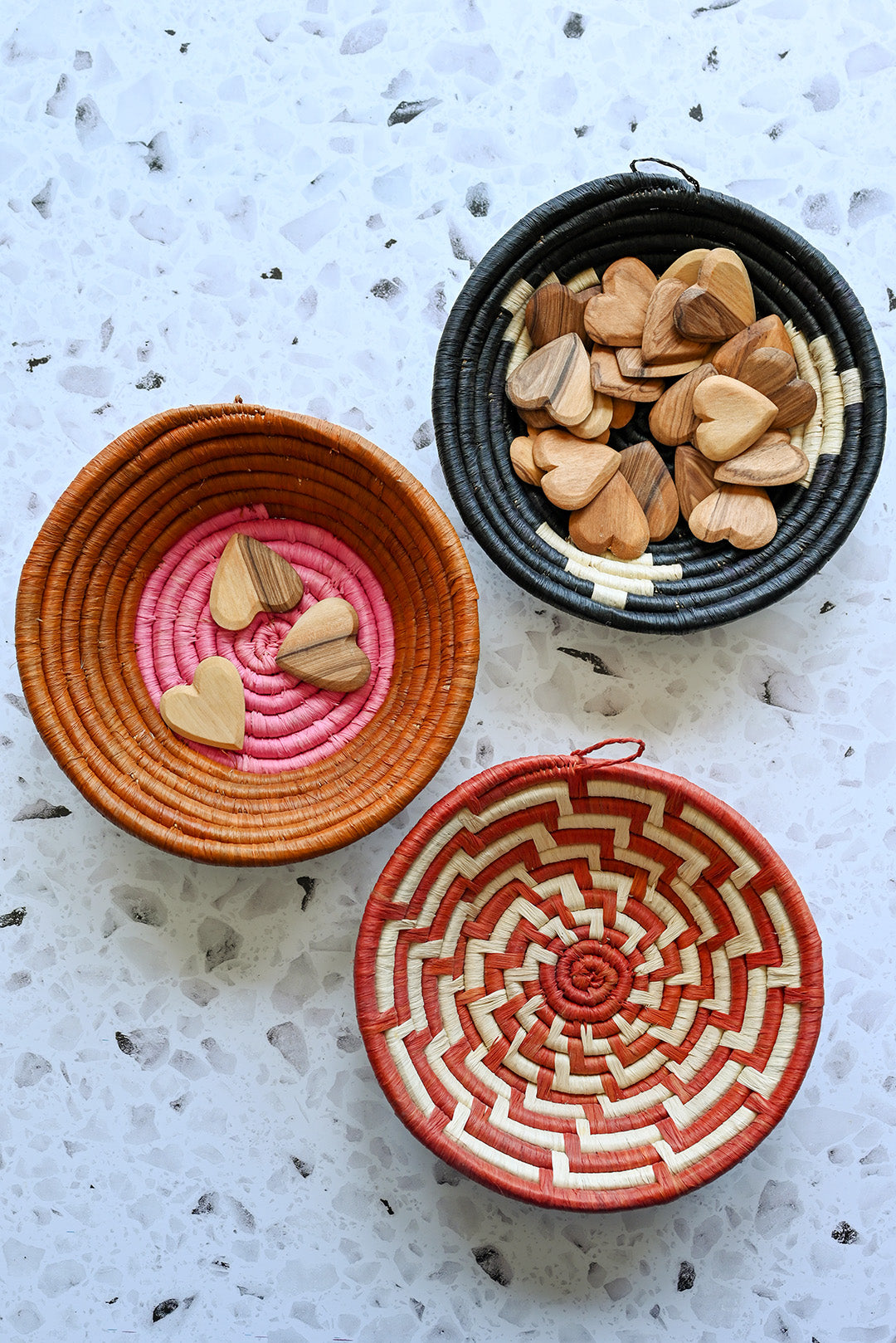 Please note: The designs shown represent typical pattern and color. As each basket is unique, no particular pattern or color is guaranteed.
