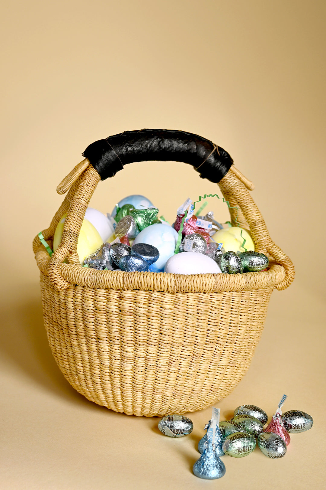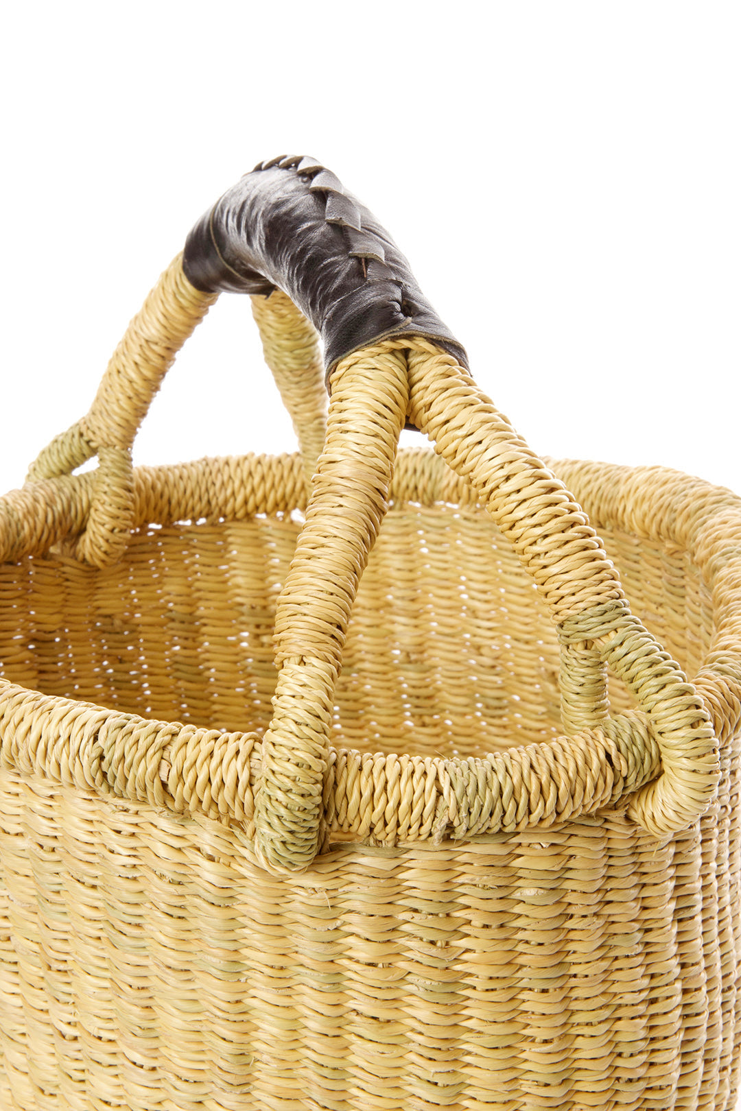 Natural Baby Ghanaian Bolga Basket with Black Leather Handle