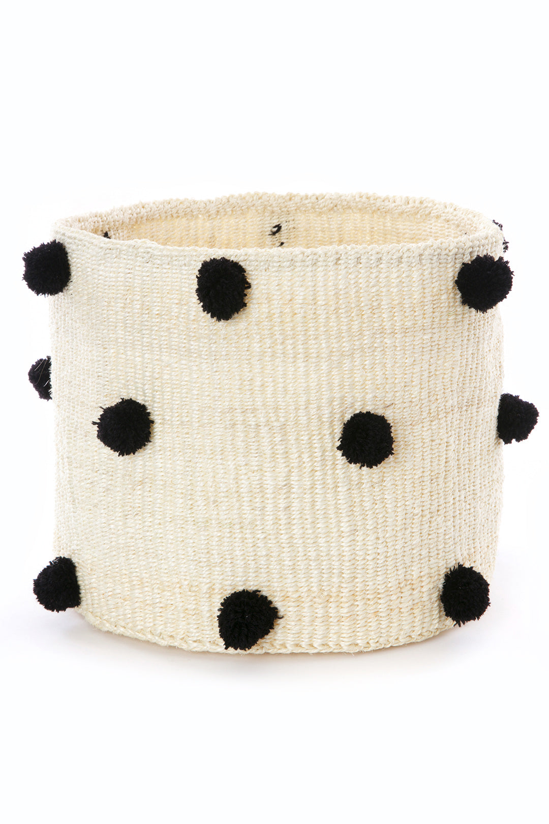 Using strands of natural sisal and finishing with bold black pom poms, weavers in rural Kenya craft these eye-catching baskets that can be used for chic storage in any room of the home. Sisal is a natural fiber extracted from an agave plant, so the baskets are coveted for their durability and ability to be re-shaped.