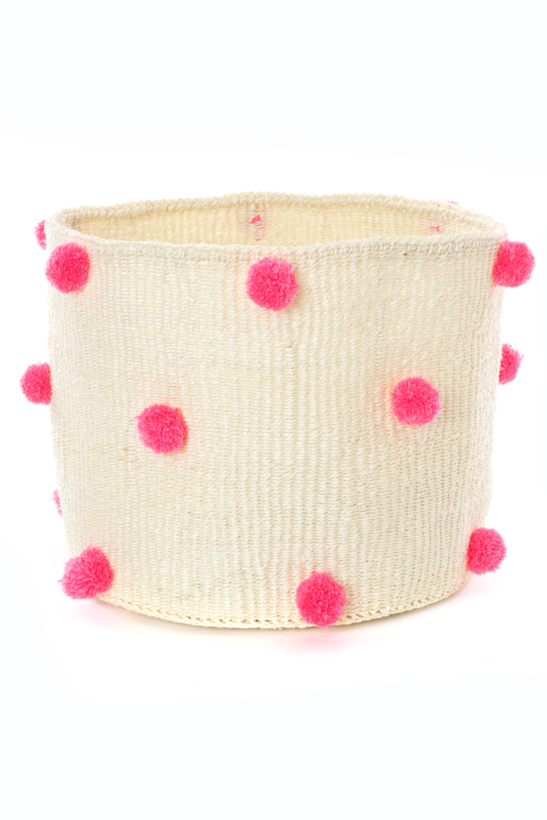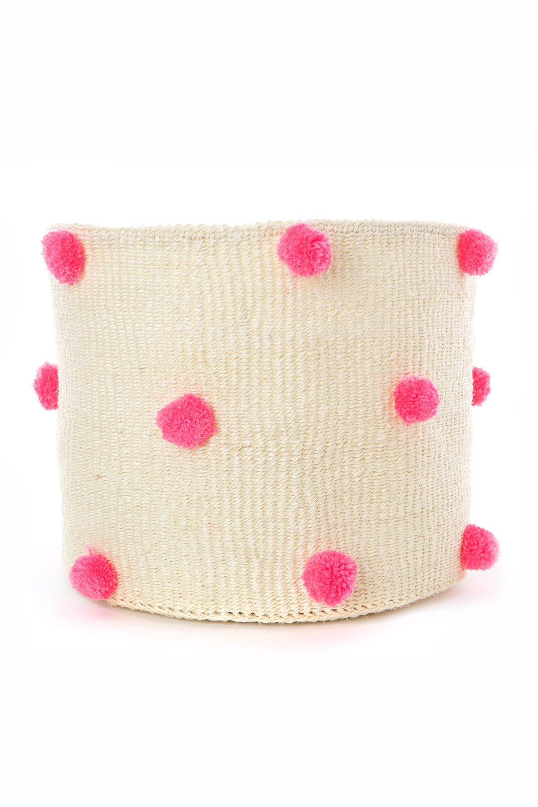 Using strands of natural sisal and finishing with bright pink pom poms, weavers in rural Kenya craft these eye-catching baskets that can be used for chic storage in any room of the home. Sisal is a natural fiber extracted from an agave plant, so the baskets are coveted for their durability and ability to be re-shaped.
