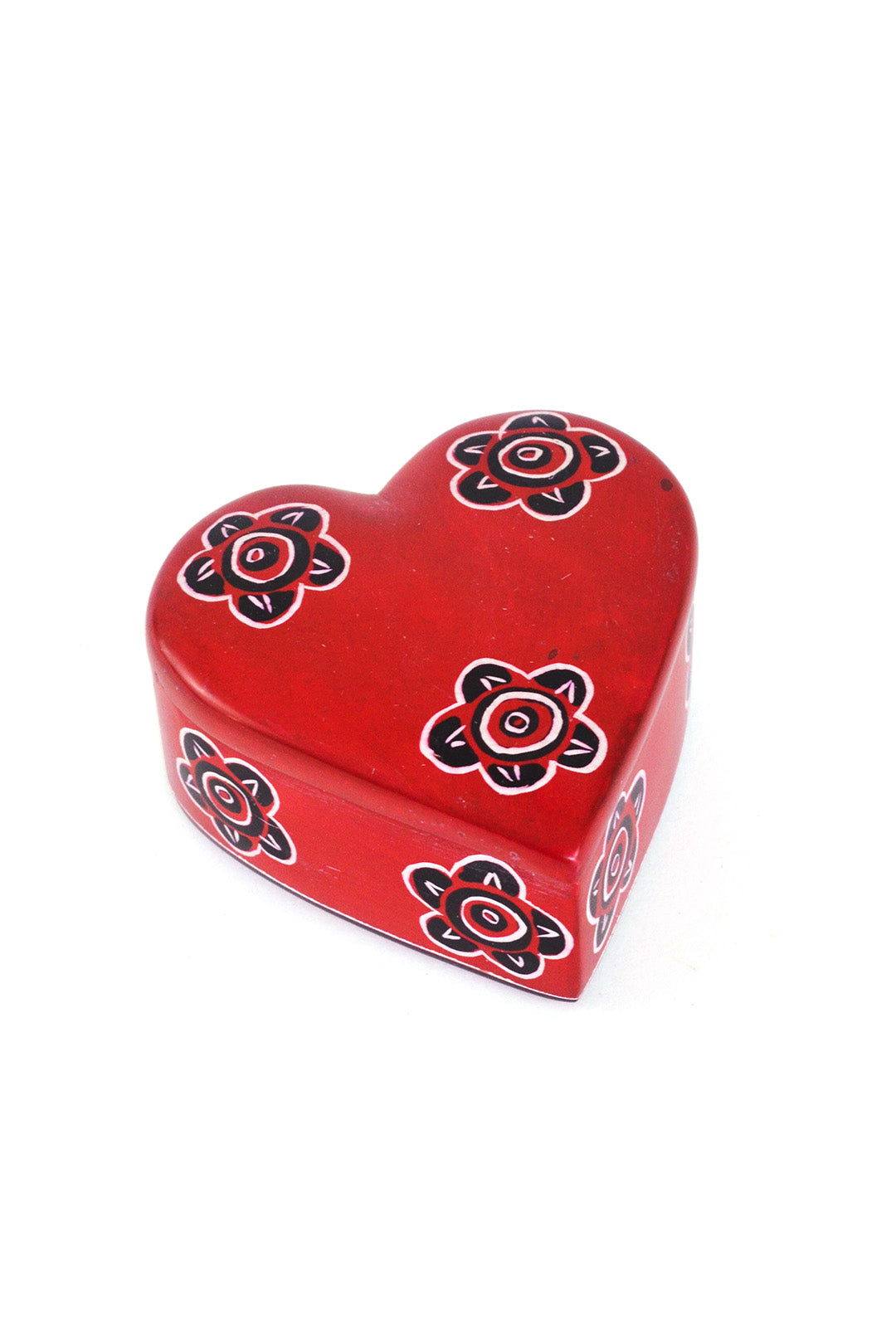 Kenyan artisans handcraft an uplifting decorative keepsake box by carving soft soapstone and adding a fanciful hand painted floral motifs.