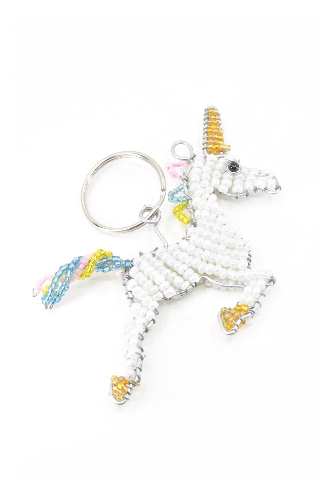 Zimbabwean artisan Patmore creates uplifting folk art from wire and beads. This colorful unicorn keychain is sure to be a favorite of rainbow chasers of all ages.