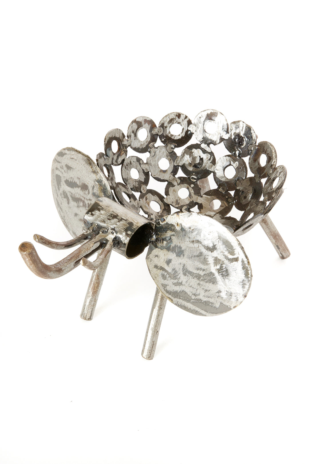 Talented welders and metal artisans craft these unique recycled metal elephant planters from washers, nuts and other salvaged metal pieces. These unique sculptures can be used as planters for small plants or succulents (the bottom is very porous so consideration should be given during planting). Adaptable beyond simple planters, these sculptures can be used to hold a variety of items inside the home and outdoors.