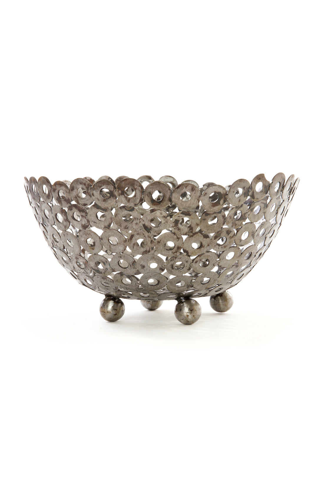 Talented welders and metal artisans craft these unique recycled metal bowls from washers and other salvaged metal pieces. Available in two sizes, these unique sculptures can be used as fruit bowls, planters for plants or succulents (they are very porous so consideration should be given during planting) or alone as a beautiful display piece. These versatile vessels can be used to hold a variety of items inside the home and outdoors.