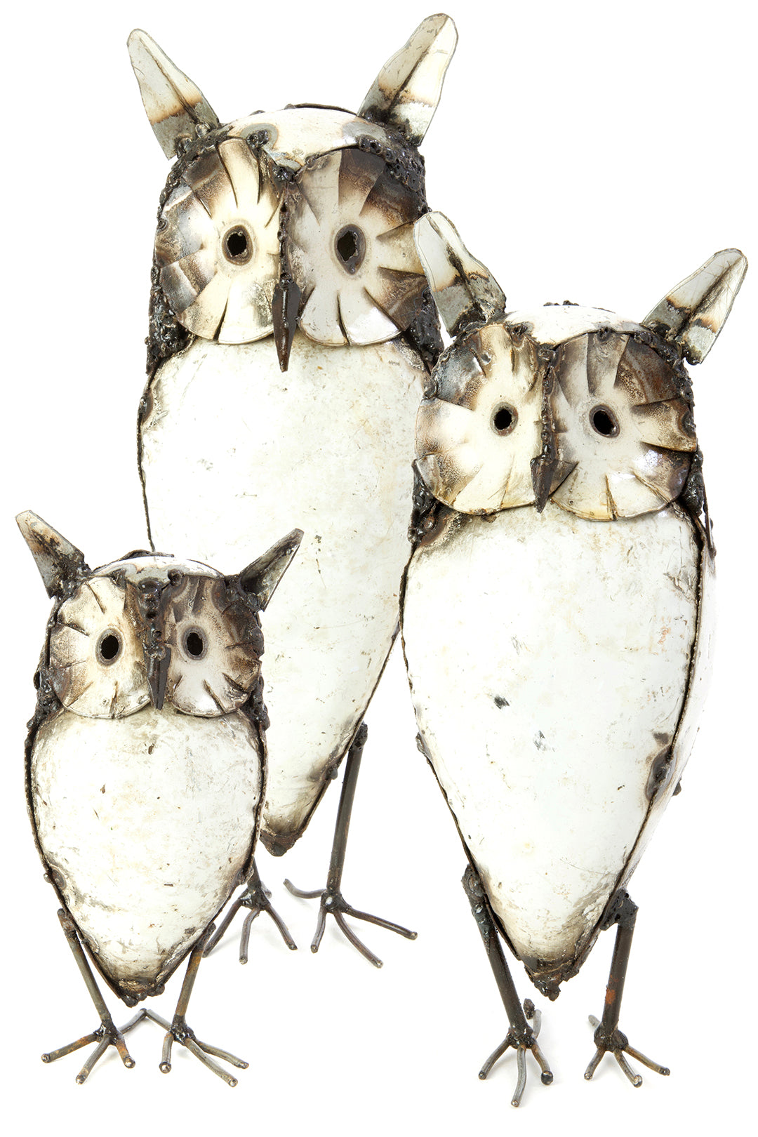 In Zimbabwe, a cooperative of talented metal workers transform recycled scrap metal into horned owl sculptures. A perfect addition to the home or garden, each owl exhibits unique characteristics.