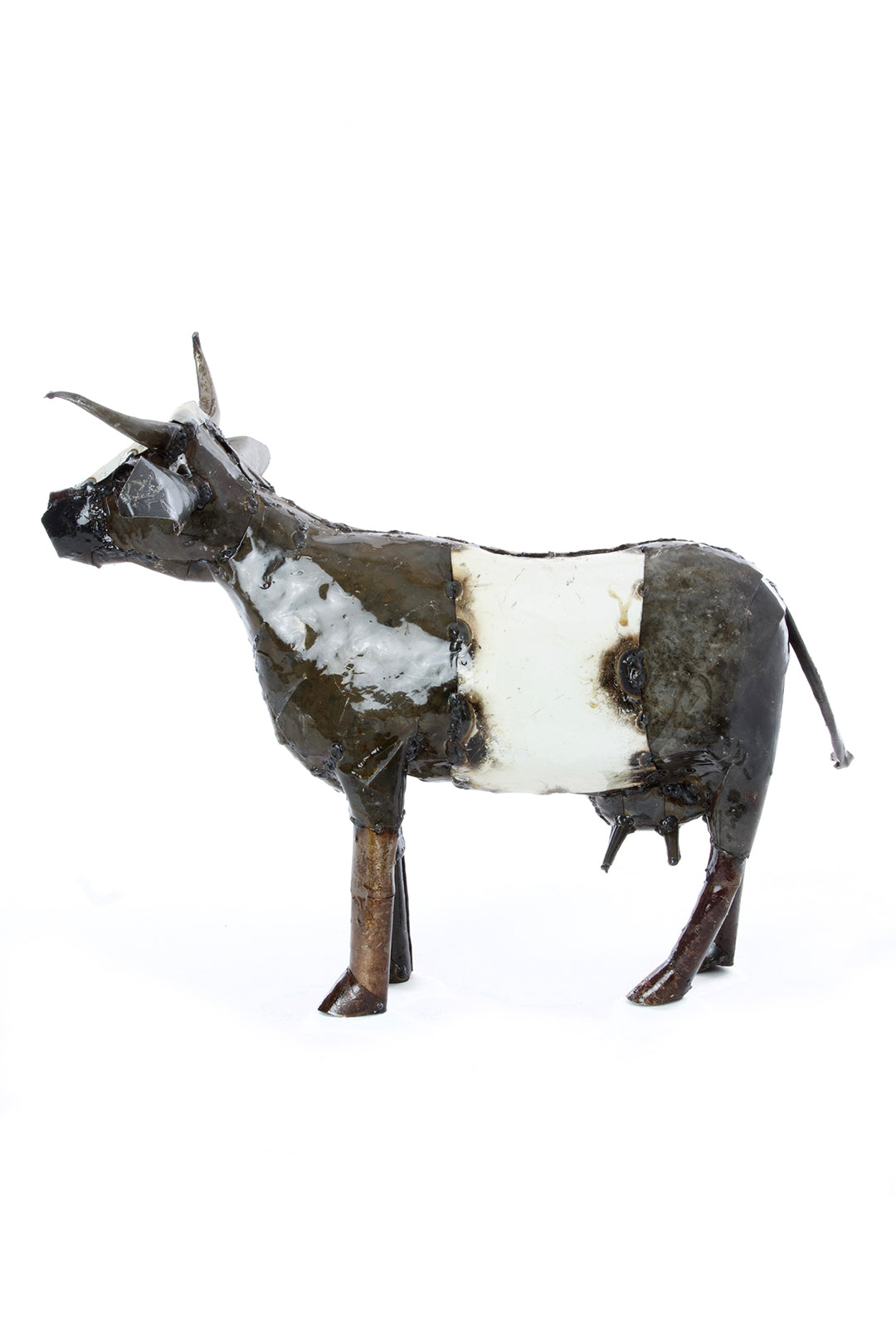At Tonderai Metal Works in Zimbabwe, metal sculptors transform used oil drums into one-of-a-kind milk cow sculptures. Each sculpture is finished with varnish to protect against the elements.
