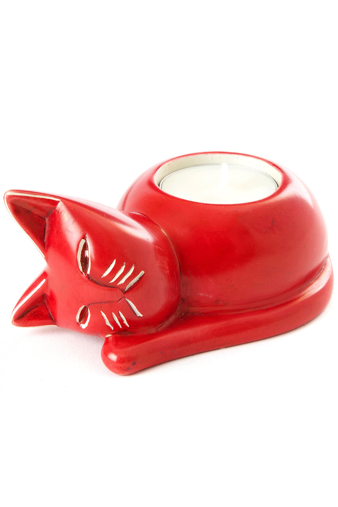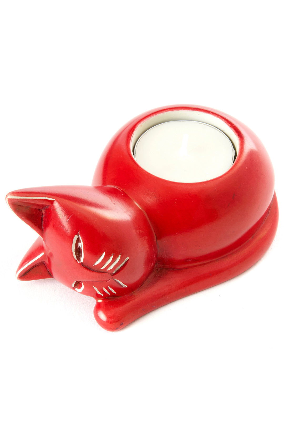 Red Soapstone Cozy Cat Tea Light Candle Holder