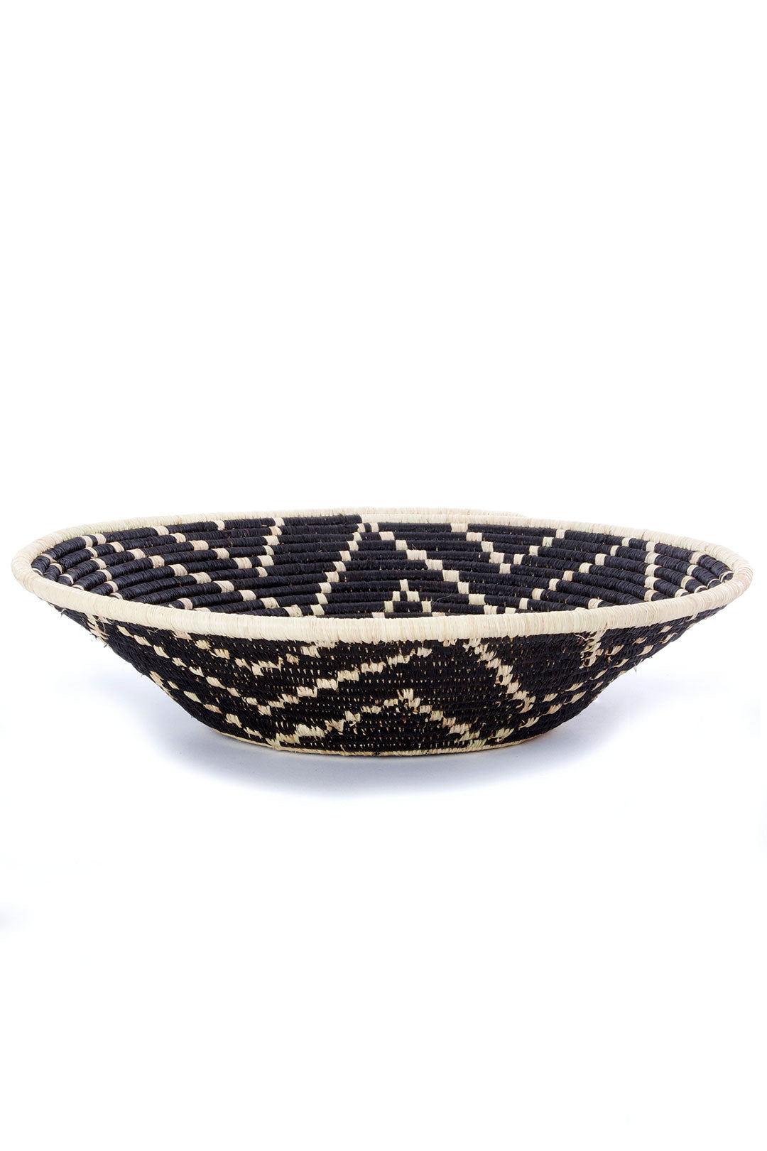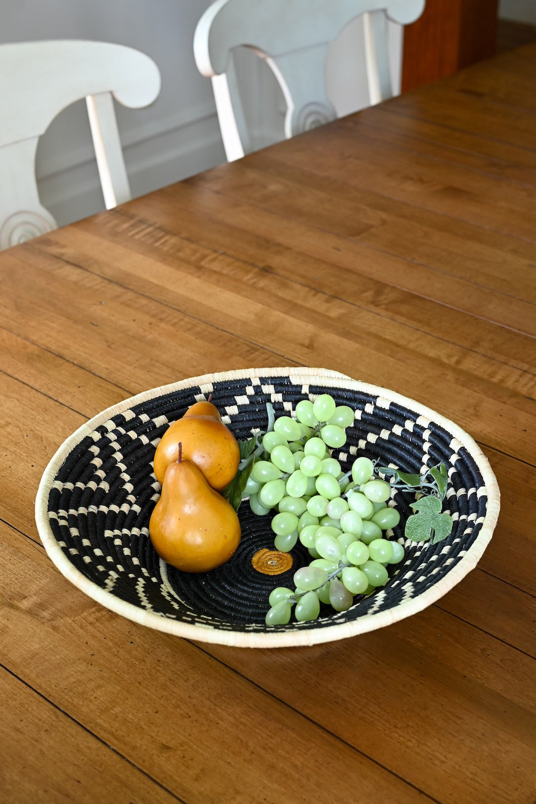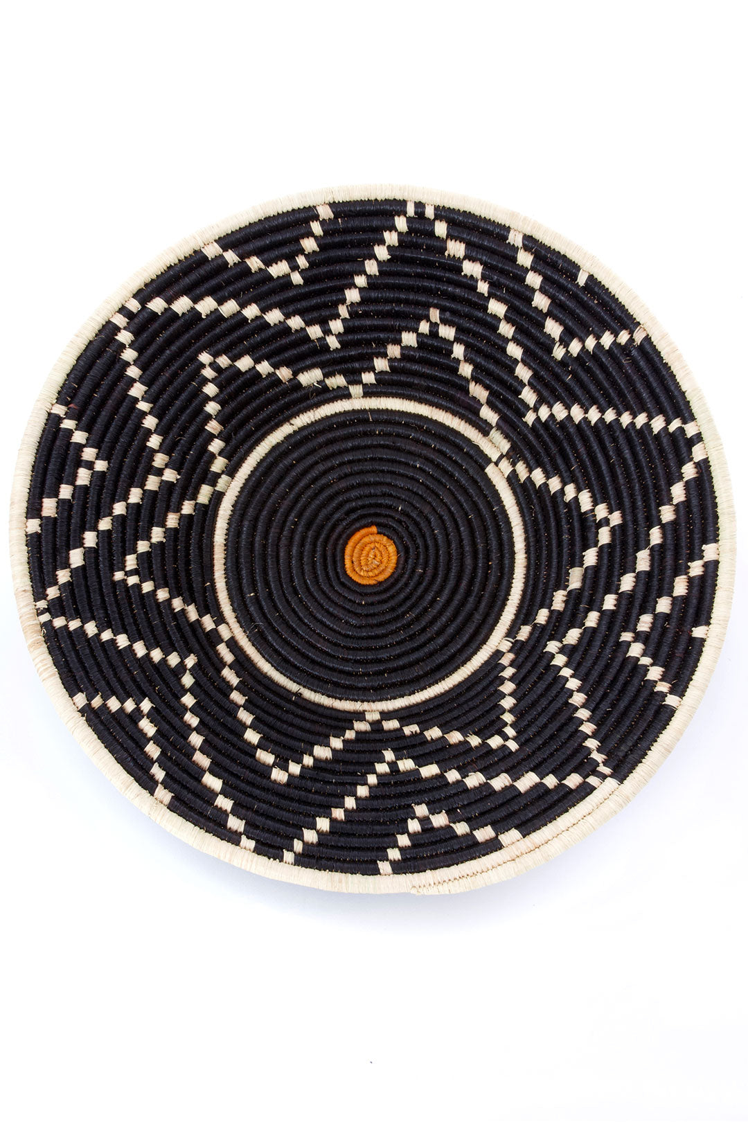 Skilled weavers living in the ethereal Rwenzori Mountains of Uganda fashion this beautiful floral motif basket from dried banana leaf or papyrus stalks and dyed raffia. Whether used for harvesting, as a tabletop storage basket or as a wall adornment, this handcrafted piece of art represents Uganda's "moon mountains" beautifully.