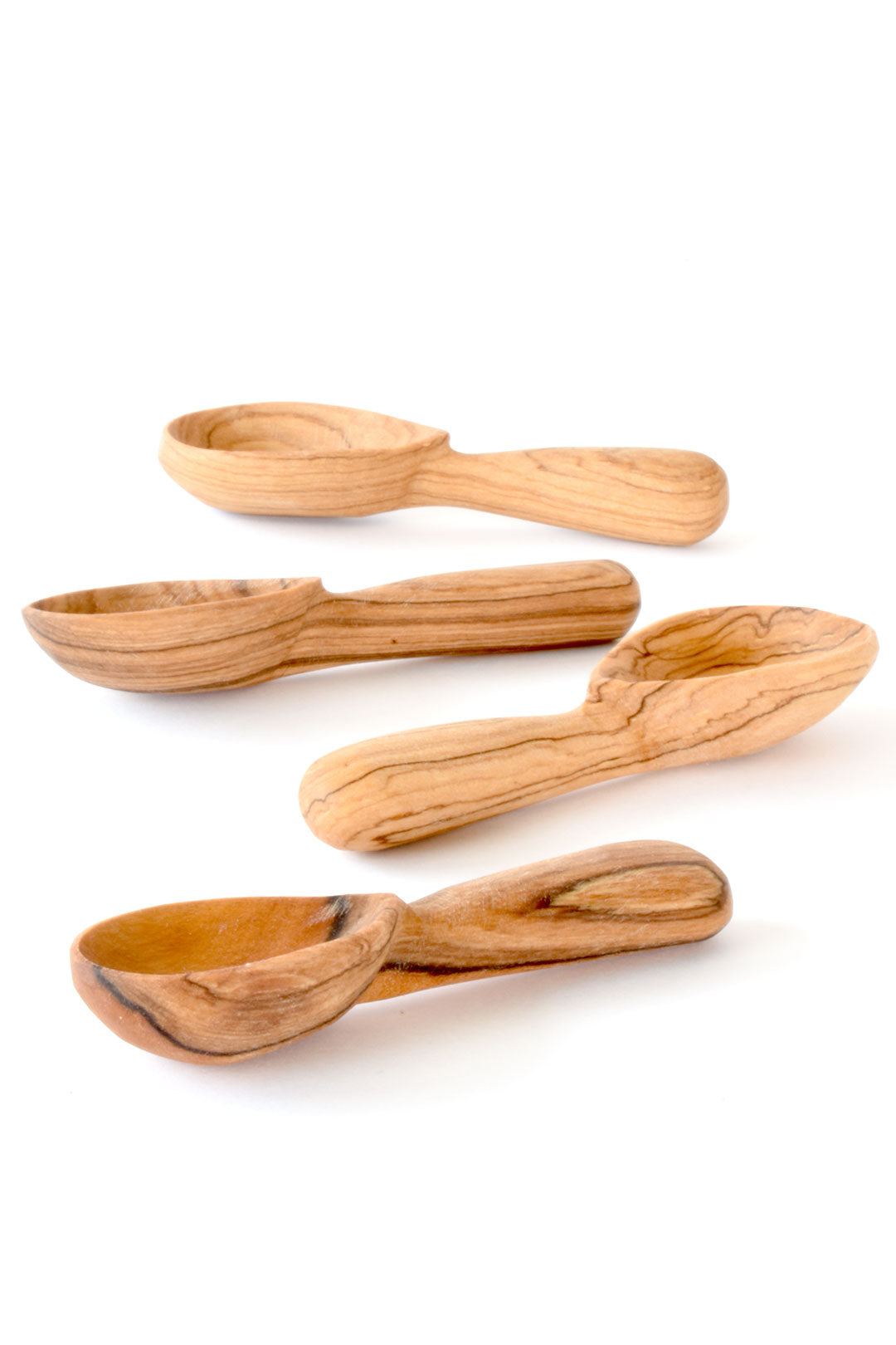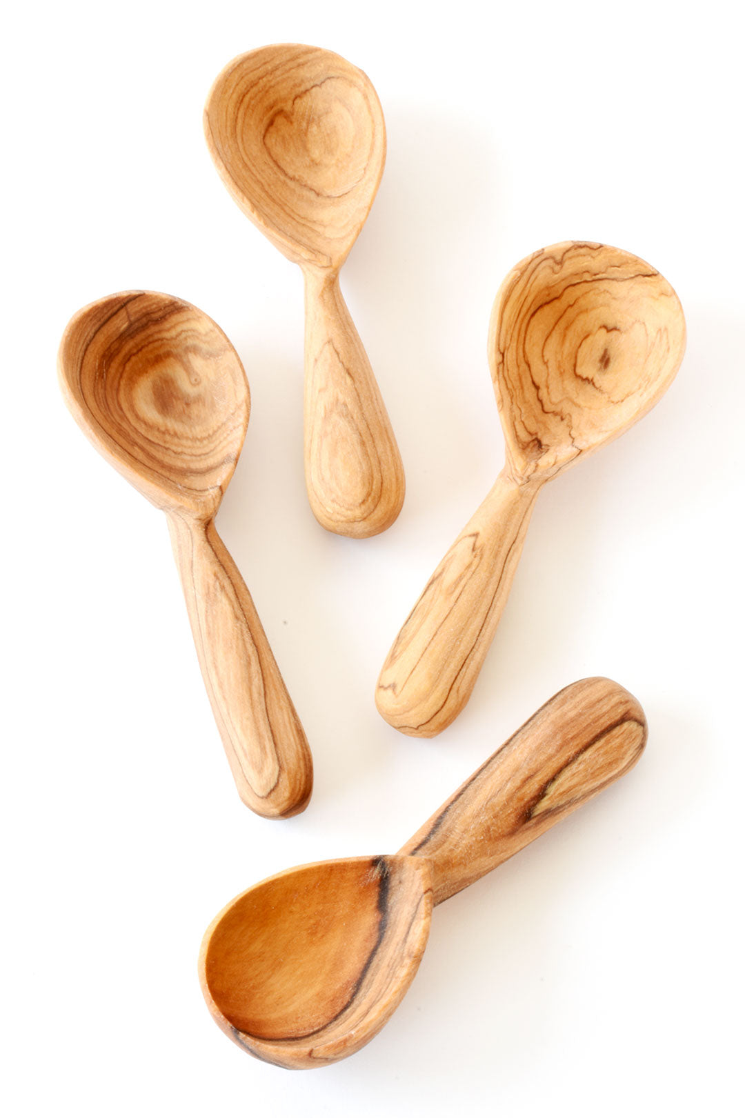 Set of 4 Wild Olive Wood Teardrop Spice Spoons