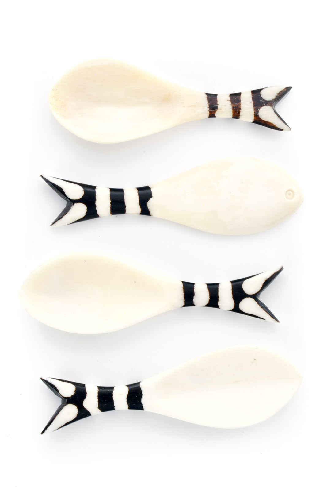Kenyan artisans hand carve these unique spoons from bleached cow bone, hand dyed using a wax batik method. Sold as a set of four, they make a fun addition to the tabletop.