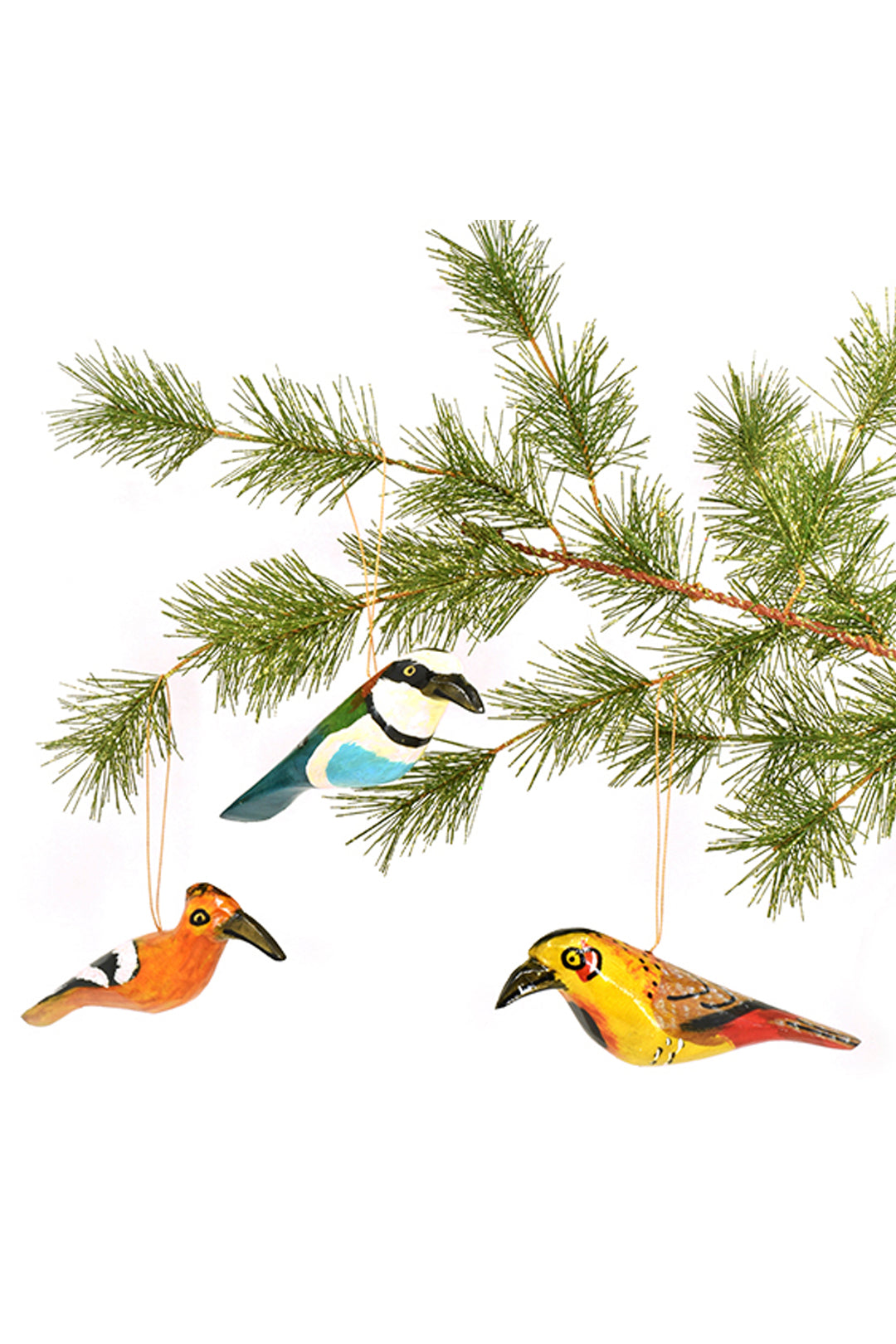 Sold as a set of three assorted ornaments. Because these are handcrafted items, each bird may vary slightly.