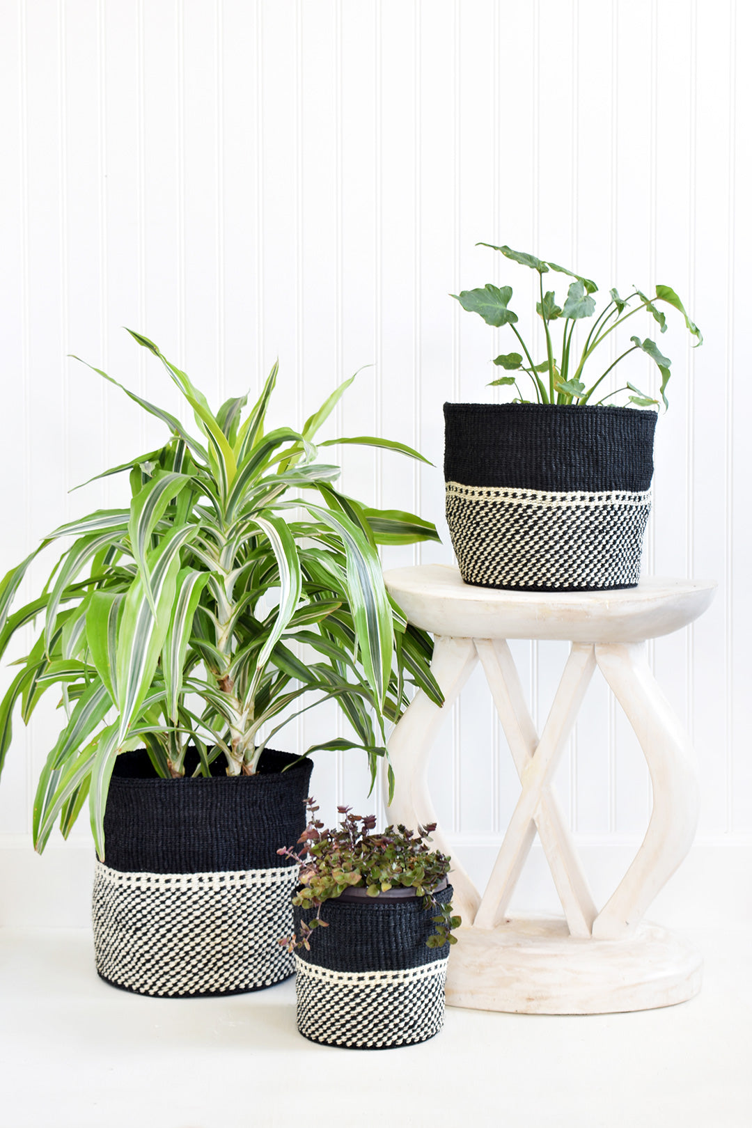 This versatile set of nesting baskets is handwoven by talented rural Kenyan women using strands of natural and hand-dyed sisal. The baskets are coveted for their ability to be re-shaped, as well as their durability and all-natural composition.