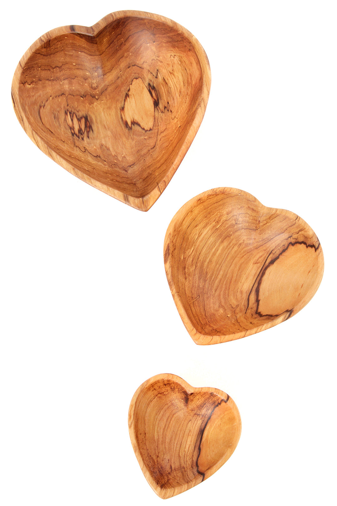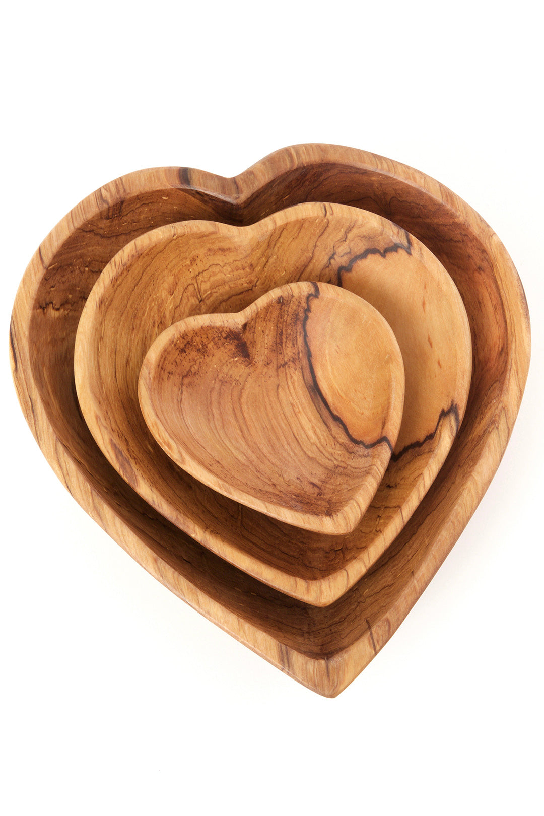 Set of Three Wild Olive Wood Nesting Heart Bowls