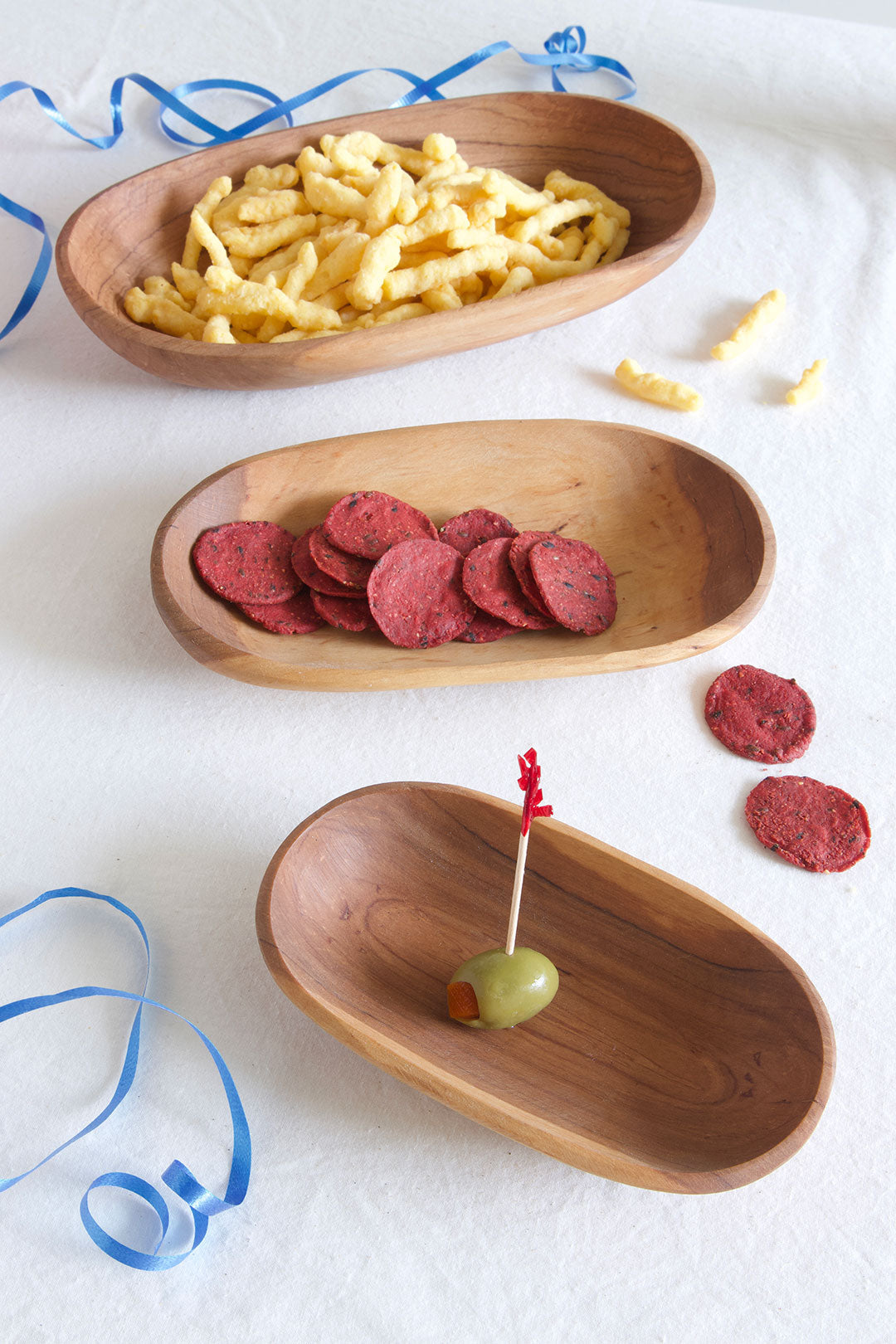 Sold as a set of three, these beautiful bowls complement our other wild olive wood serving pieces.