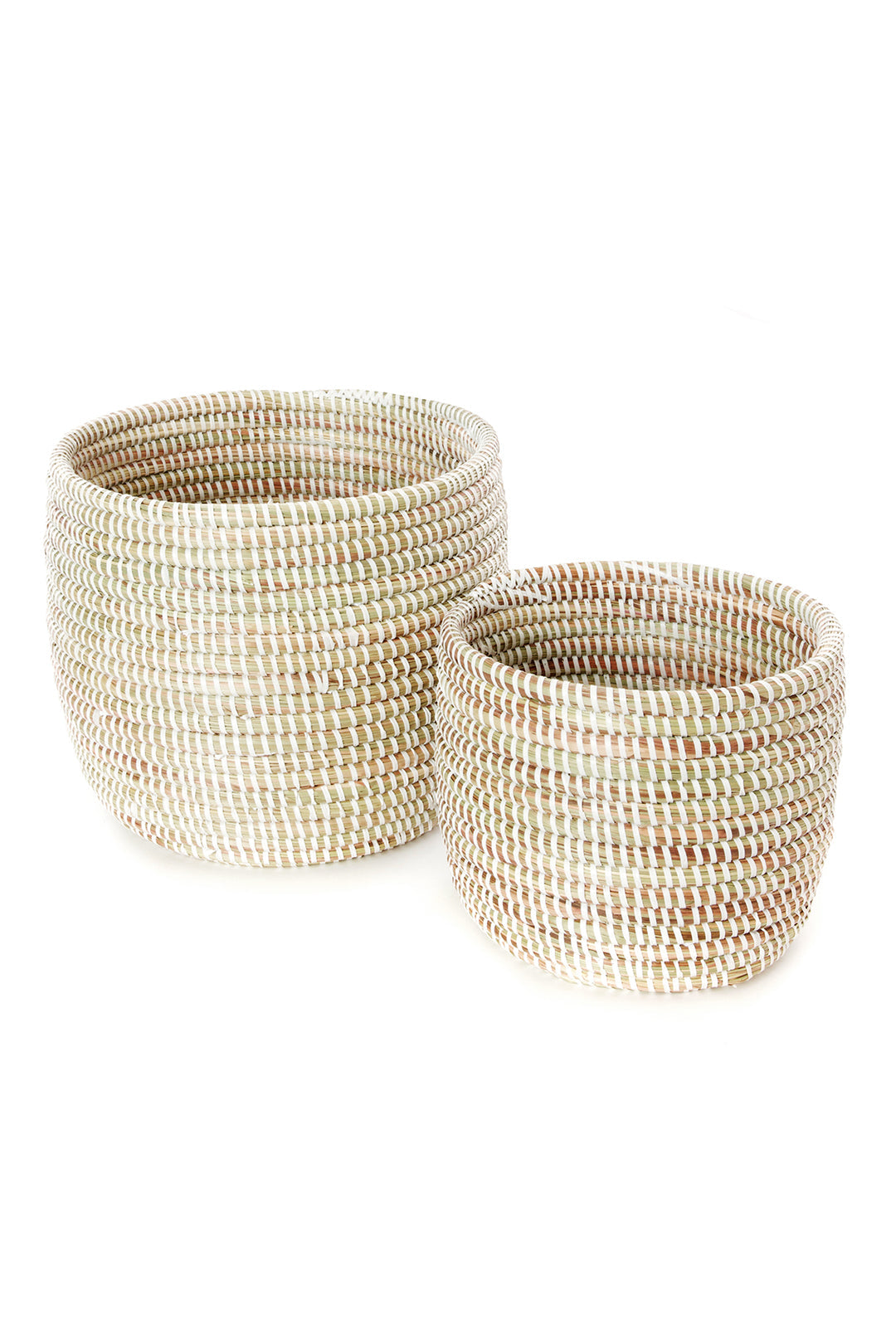 These useful handmade bins are sized just right to hold 6" and 8" planters. Sold as a nesting set of two, the bins elevate floral displays with beautiful color and texture.